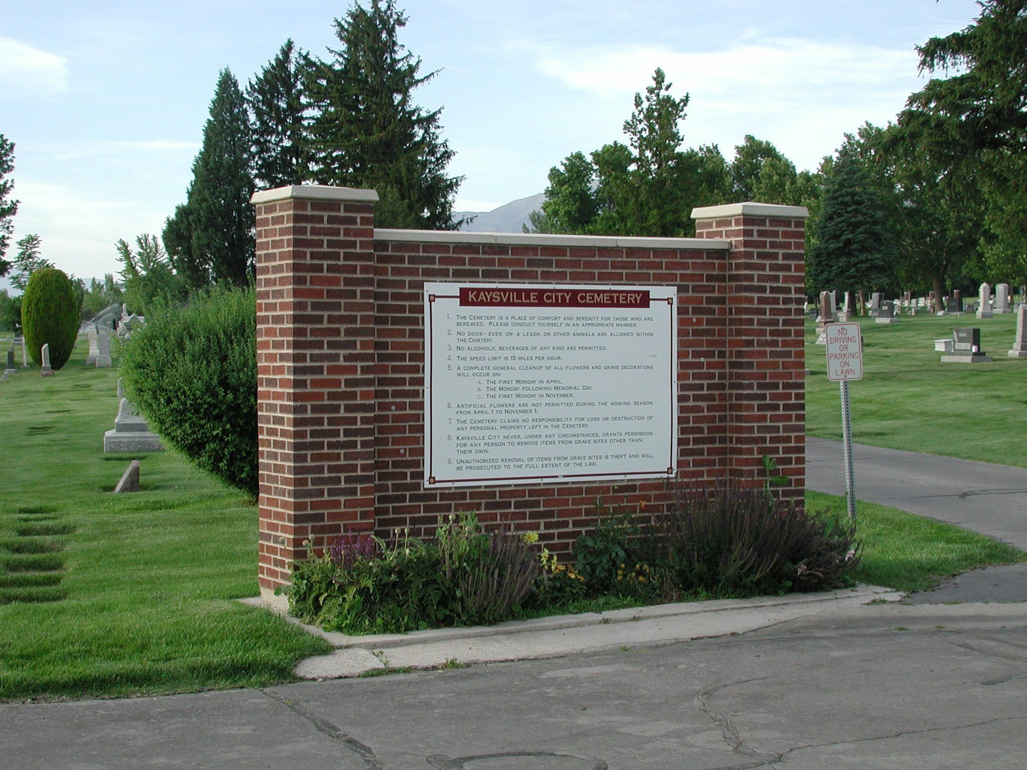 Sign at front entrance to cemetery in Kaysville, Utah.Photograph Details