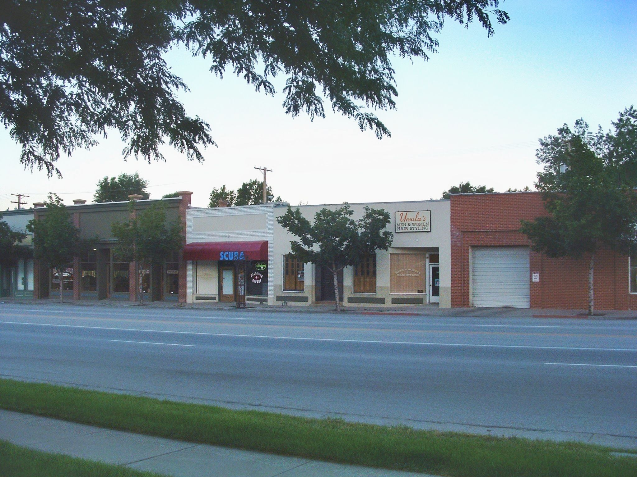 Street view of business buildings.Photograph Details
