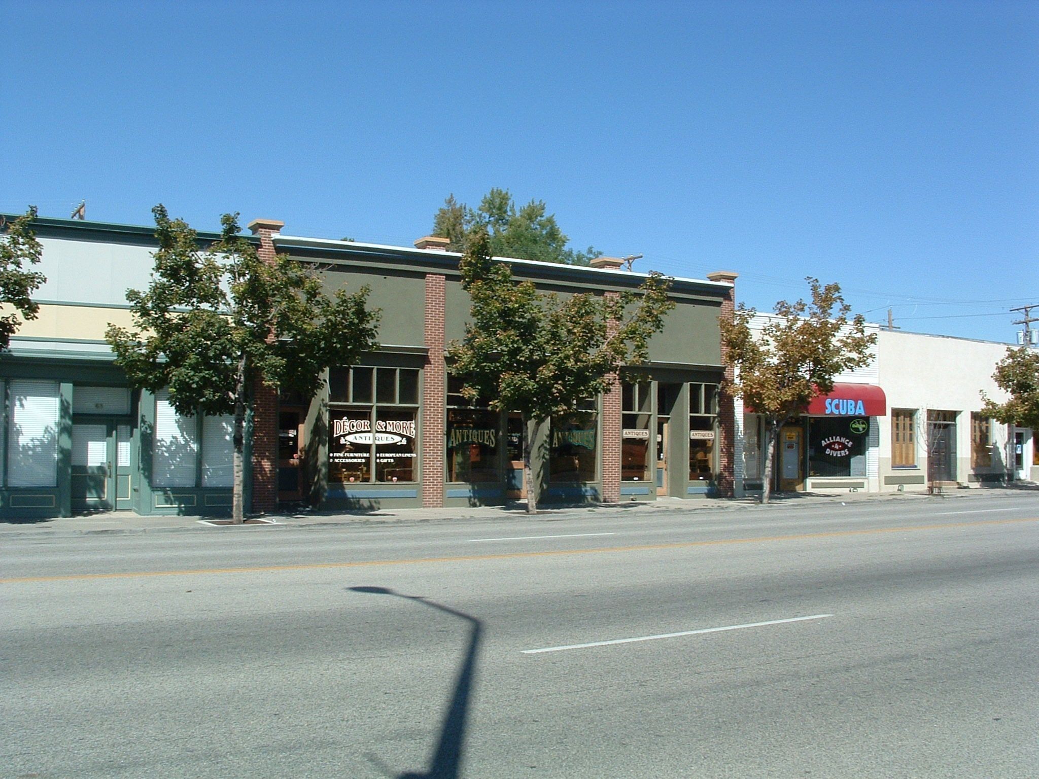Decor and More, Scuba, and other businesses on Main Street, Kaysville Utah.Copyright
