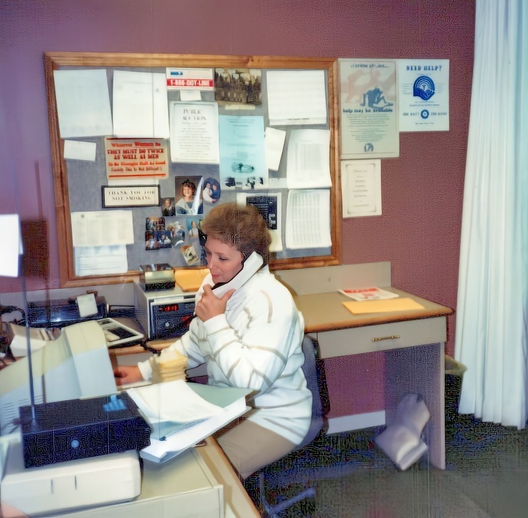 Phyllis Morgan, Kaysville City Police Dispatcher and Secretary, conducting business on telephone.Photograph Details