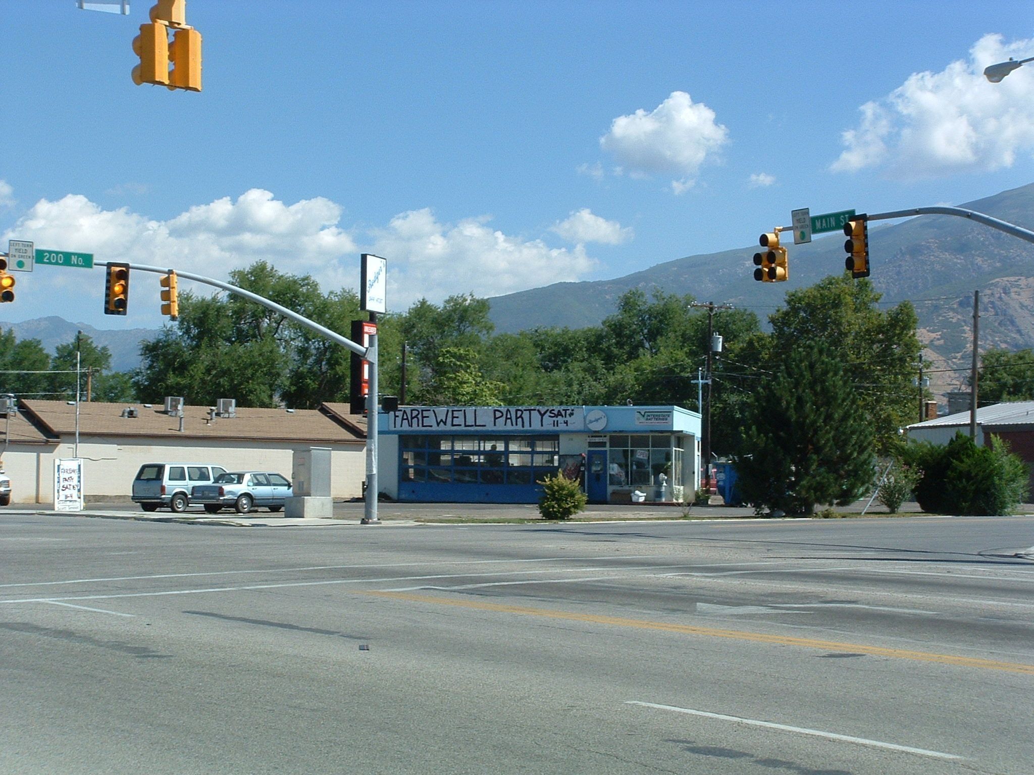 Farewell sign on the car repair station announces the retirement of owner. Business located at 210 North Main Street, Kaysville, Utah.Copyright