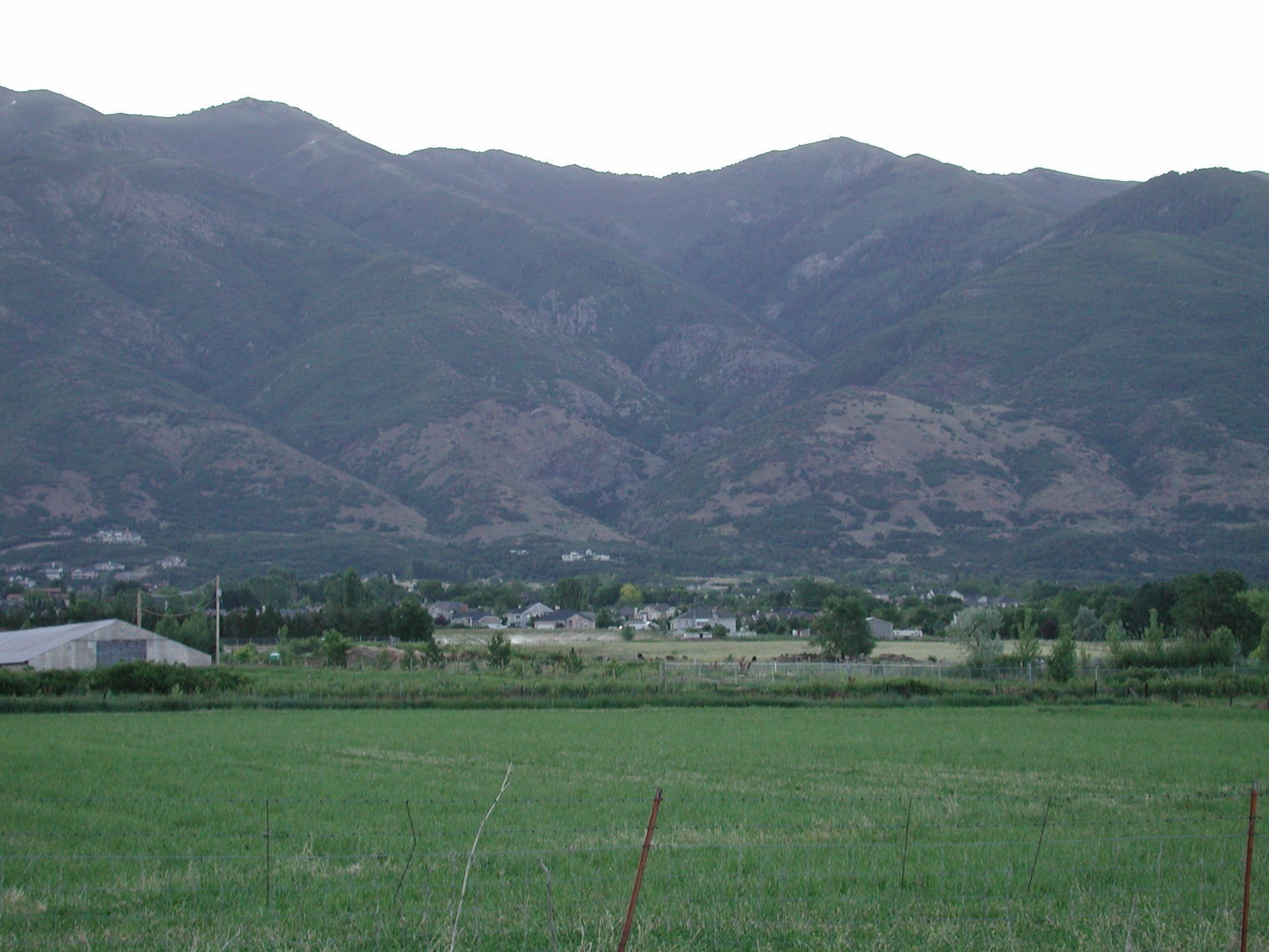 Mountains overlooking fields.