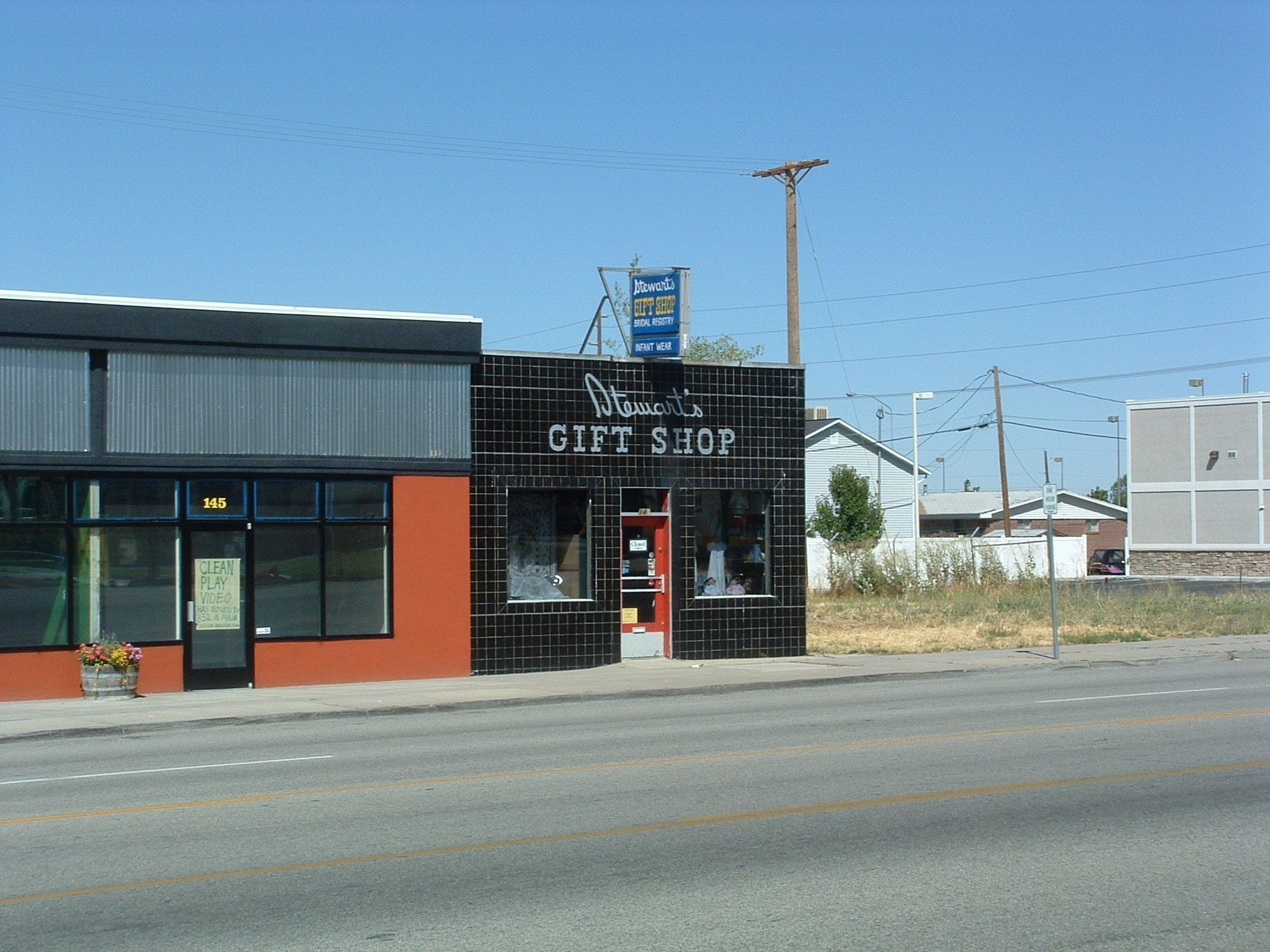 Exterior of Stewart's Gift Shop and Clean Play Video store.Photograph Details