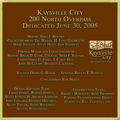 200 North overpass plaque