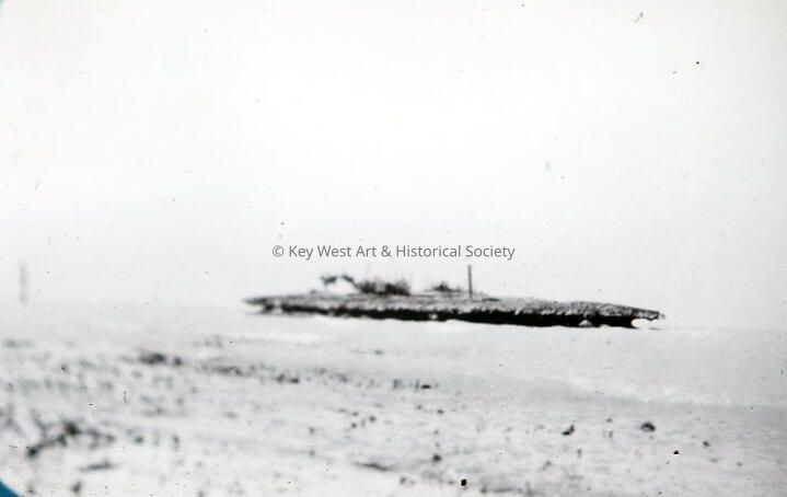 Black and white 35mm slide of Target Island off of Marathon. The island was located just off of the Florida East Coast Railway camp.