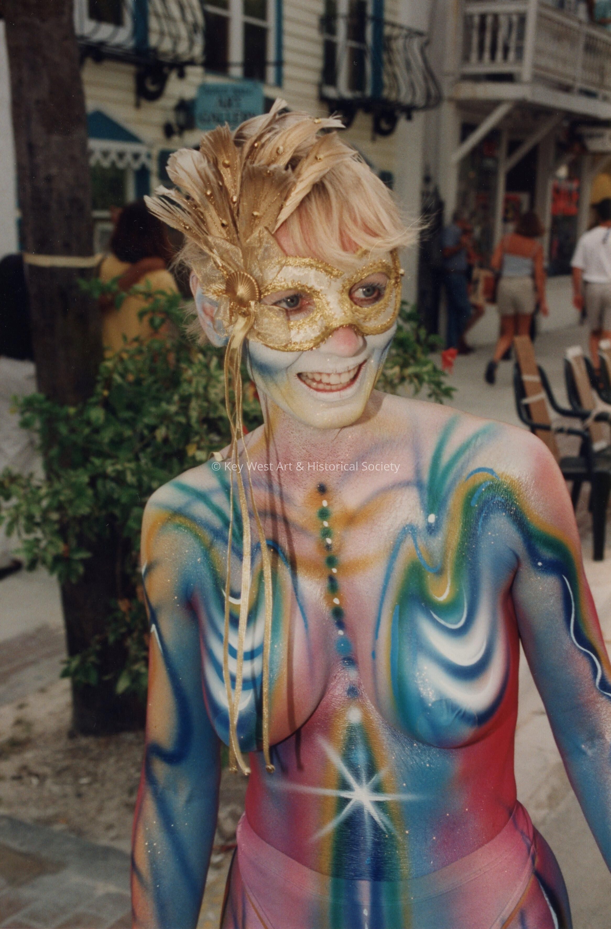 Unknown woman with her body painted.