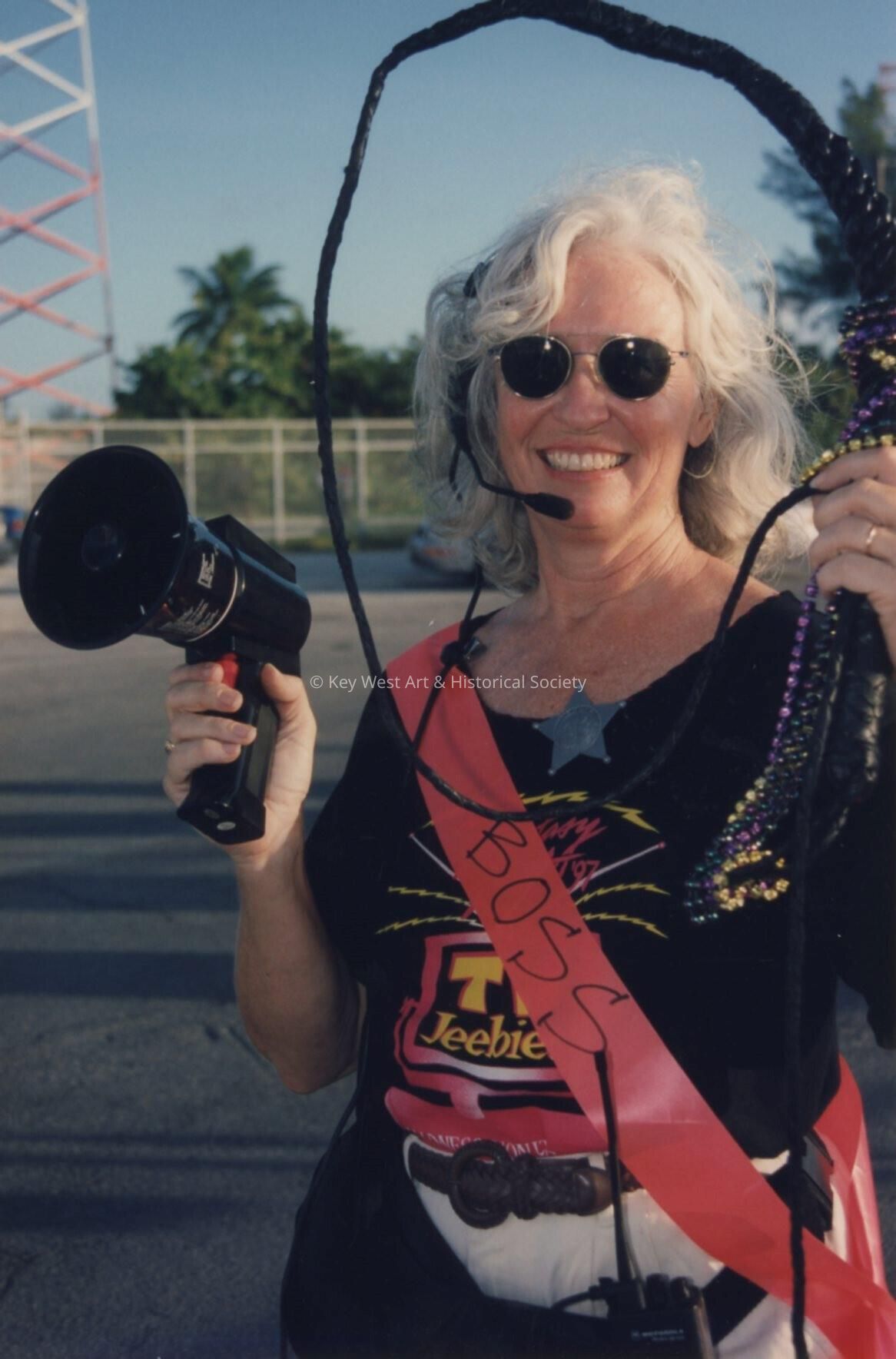 Unknown lady with an ear piece on and a loud speaker.Collection