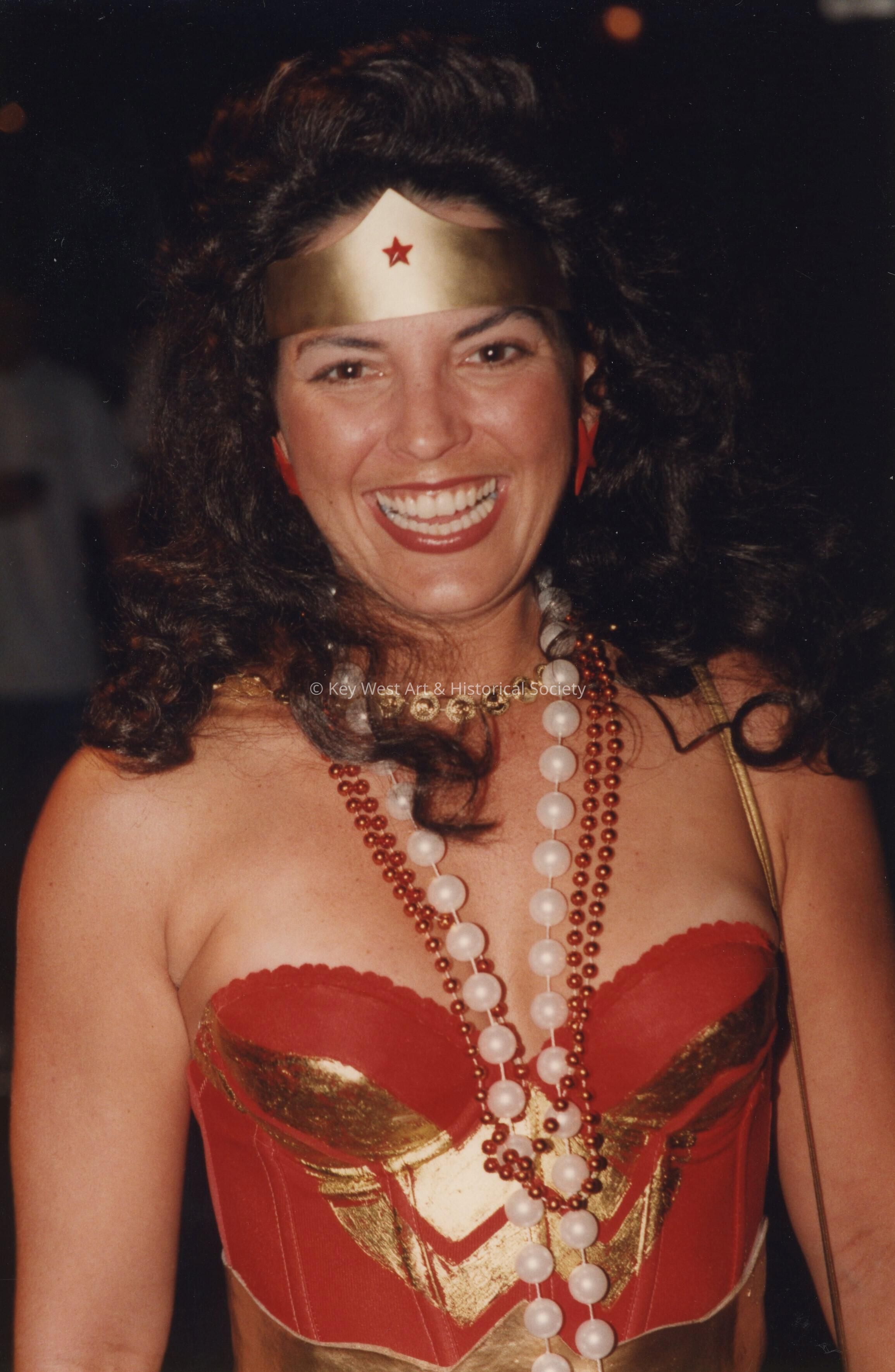 Unknown woman dressed as wonder woman.