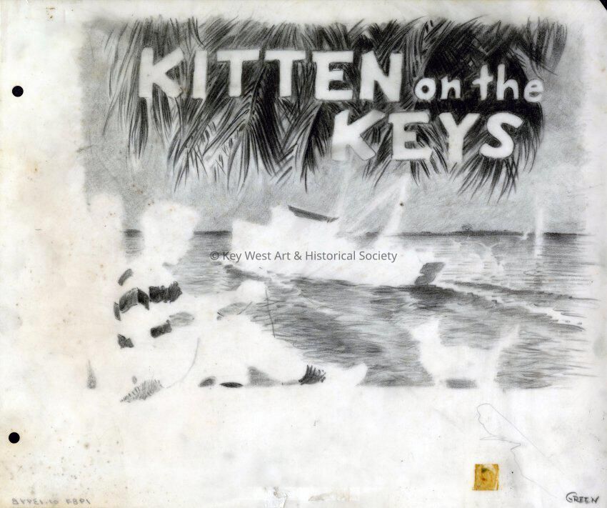 A charcoal sketch on vellum created by Morgan Dennis.  The sketch is one of a series of color separations used in printing the book cover for 'Kitten on the Keys'.  This film is for the color Green.Collection