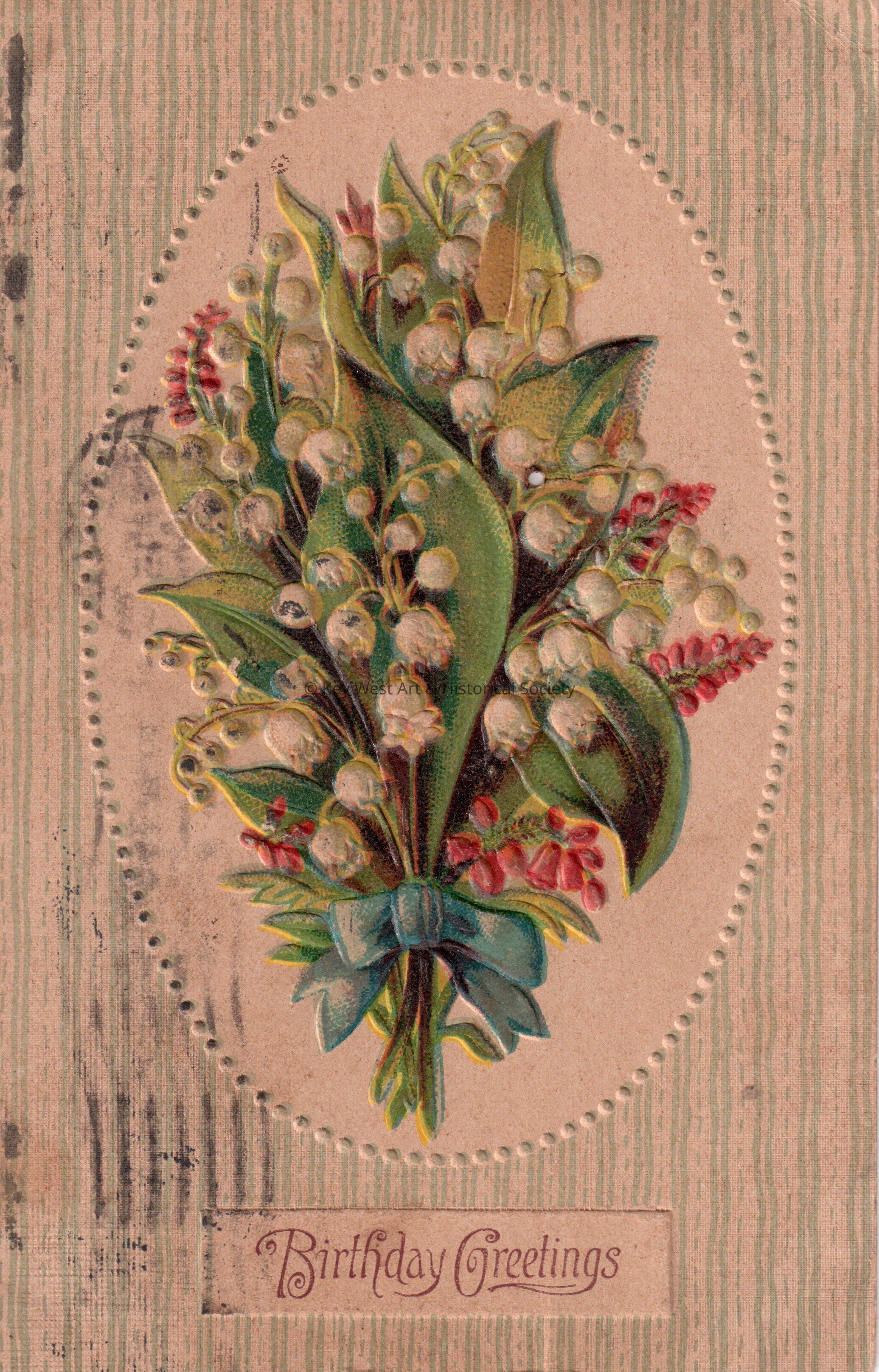 Postcard depicting a bouquet of flowers. The caption reads, ‘Birthday Greetings’. The message on the verso reads, ‘Best wishes from Mrs. Deenny’. The card is addressed to Miss C. Hattrick, 2113 Manton Street, Philadelphia, Pennsylvania, and is postmarked Philadelphia, September 15, 1909.Collection