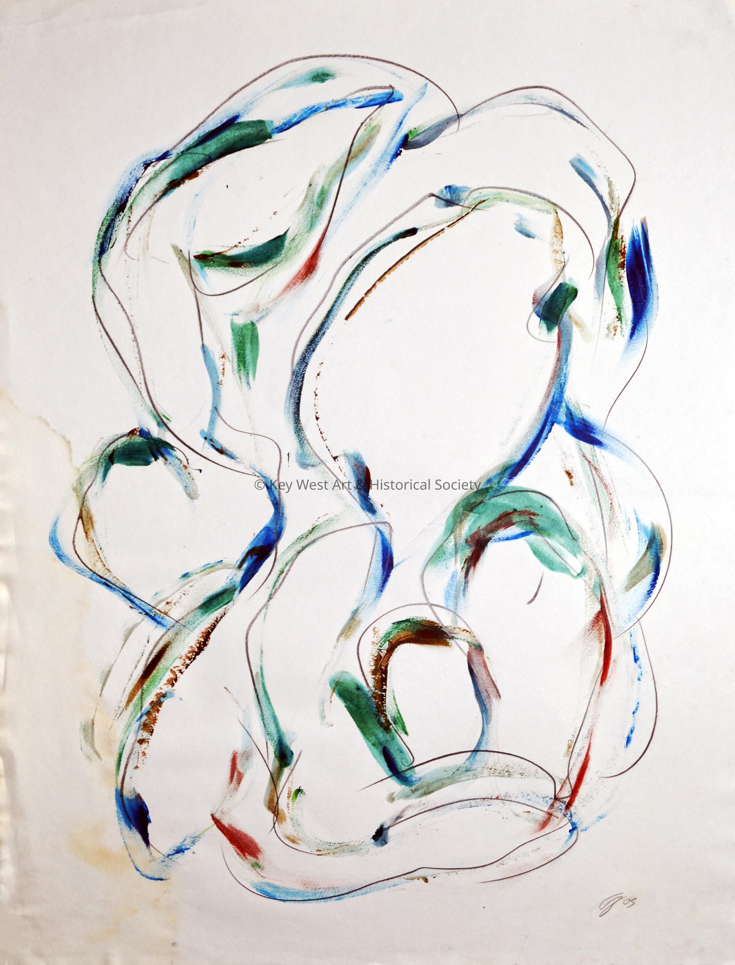 Watercolor and acrylic painting by Fred Gros depicting an abstract form.Artwork Details