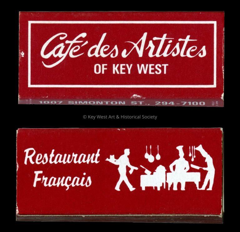 Matchbox from Cafe des Artistes of Key West French Restaurant formerly located at 1007 Simonton Street. Contains six matches.Collection