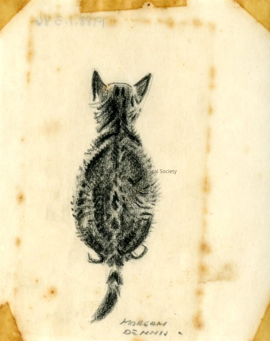 A pencil sketch on paper created by Morgan Dennis.  The sketch depicts a cat sitting.Type of Drawing