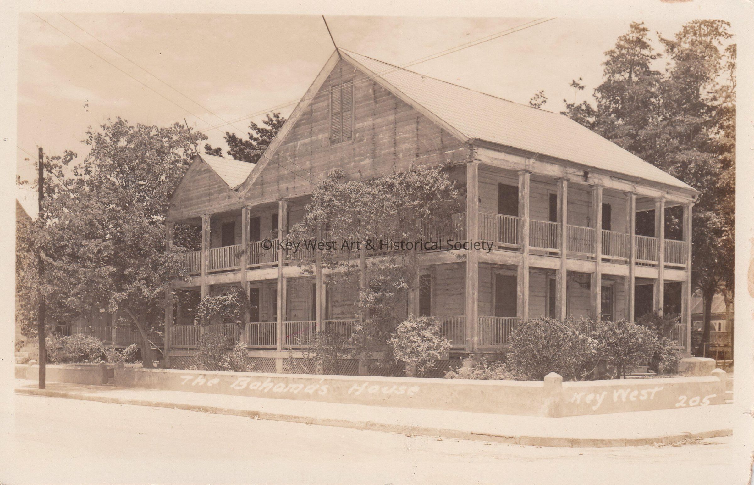 Postcard of a two-story home. The caption reads, ‘The Bahama’s House, Key West’.Subject Place