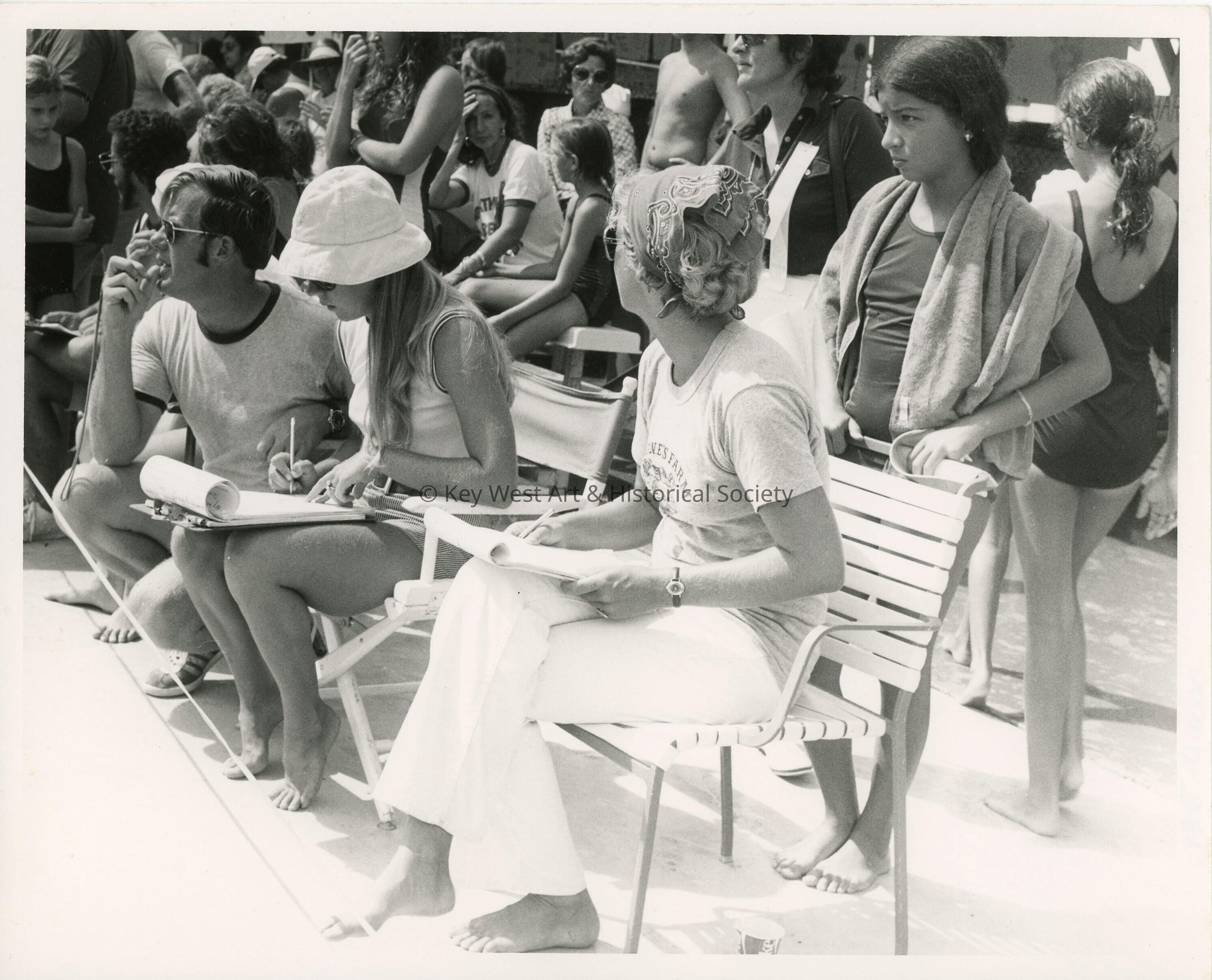 A group of unknown people at the pool