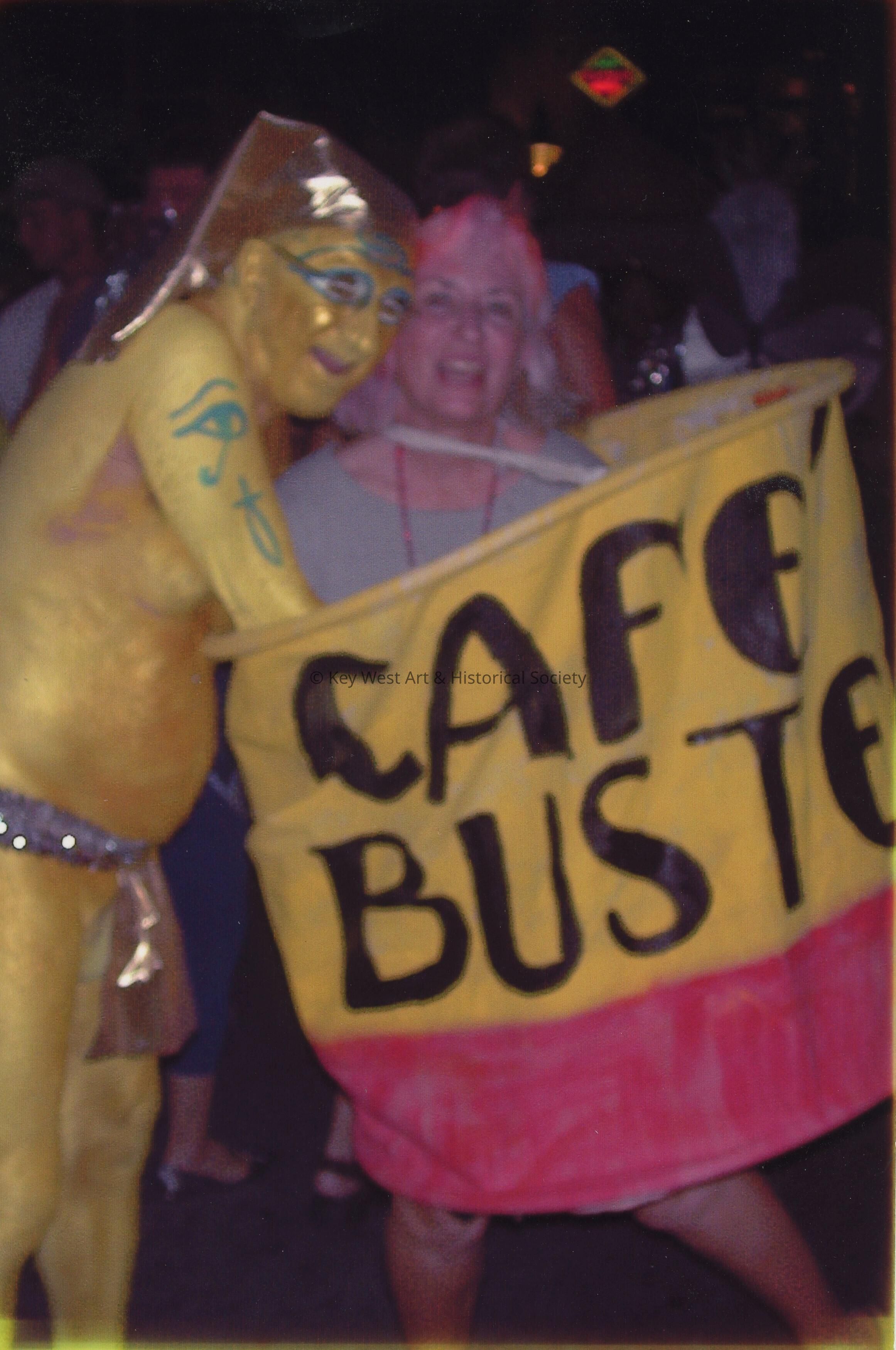 Two unknown people dressed up, one as café bustelo.Entry/Object ID
