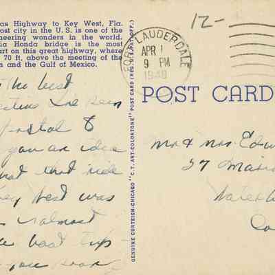 Postcard depicting Bahia Honda Bridge on the Overseas Highway from the Mainland to Key West, Fla. The Overseas Highway to Key West, Fla. the southernmost city in the U.S. is one of the greatest engineering wonders in the world. Crossing Bahia Honda bridge is the most spectacular part on this great highway, where the road rises 70 ft. above the meeting of the Atlantic Ocean and the Gulf of Mexico.Collection