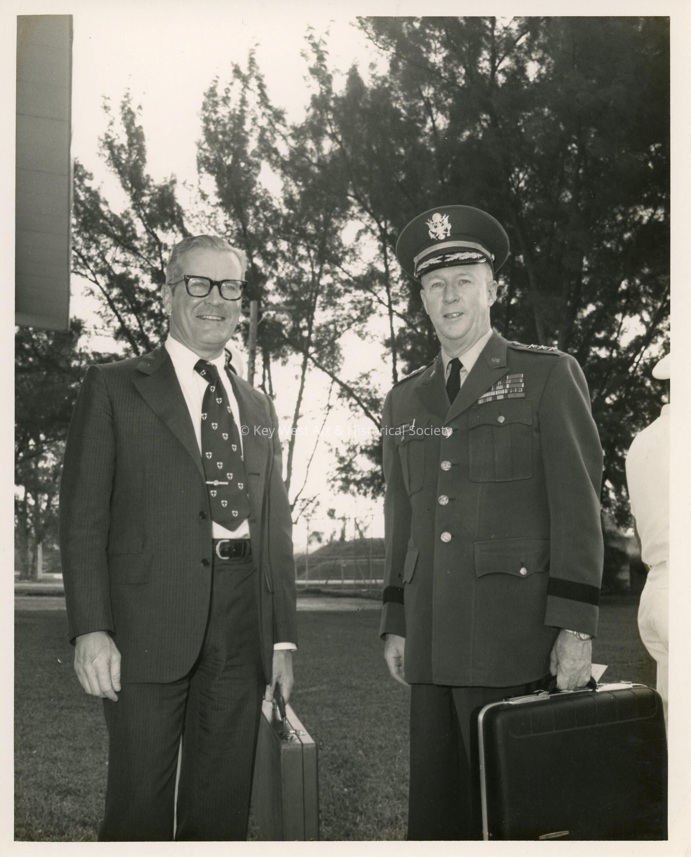 2 Unknown men standing outside, one is uniform .Collection