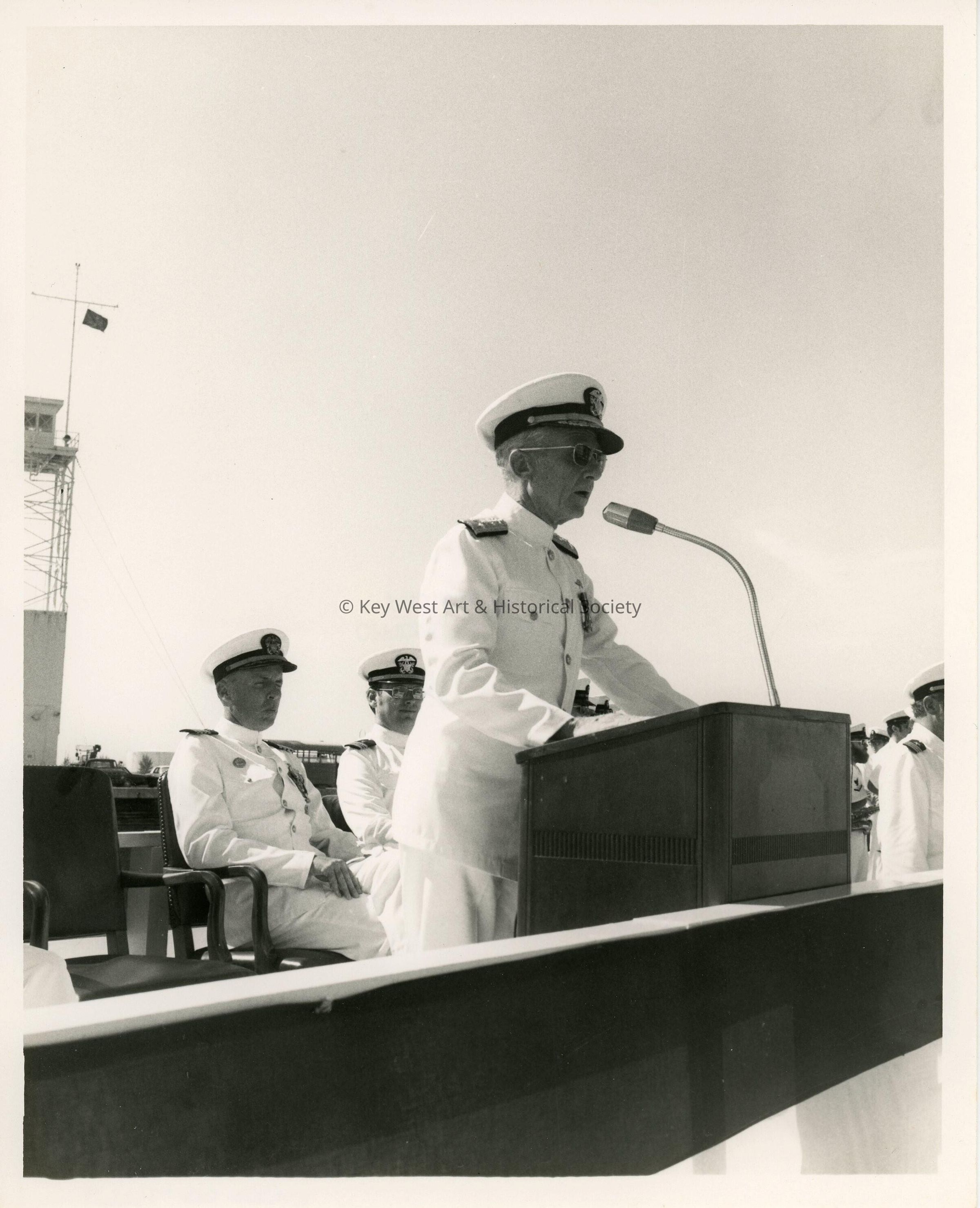 Unknown man in uniform talking at the podium at a ceremony.Collection