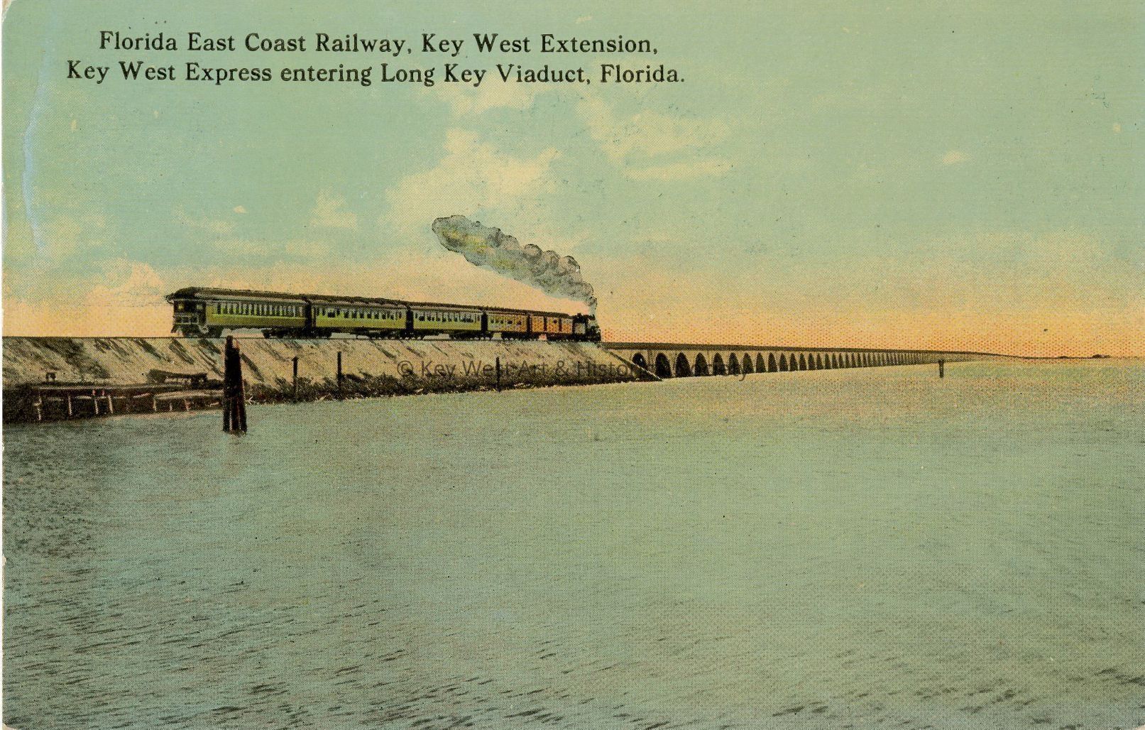 Florida East Coast Railway, Key West Extension. Key West Express entering Long Key Viaduct, Florida.Collection