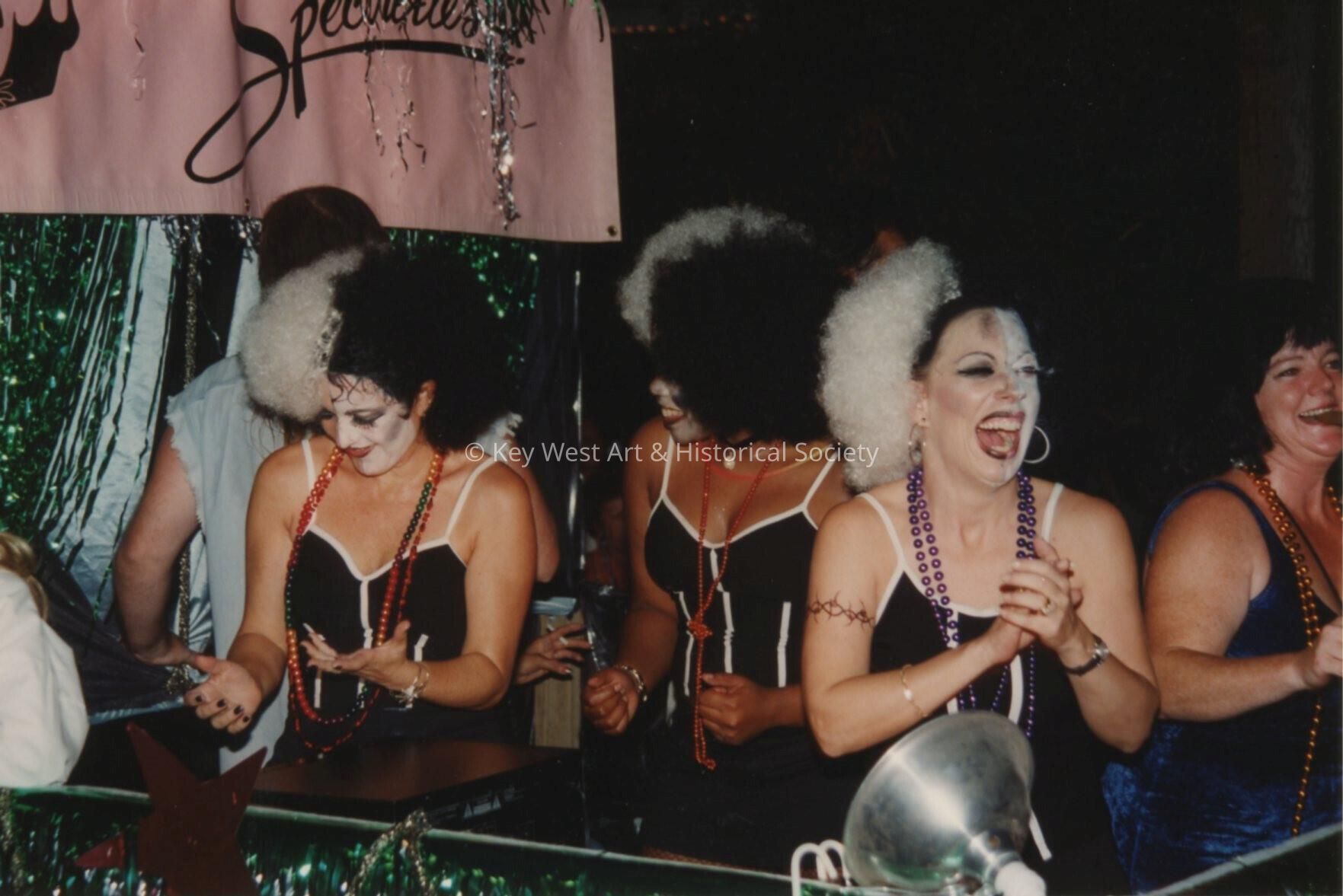 Unknown people dressed up on float in the parade.Collection