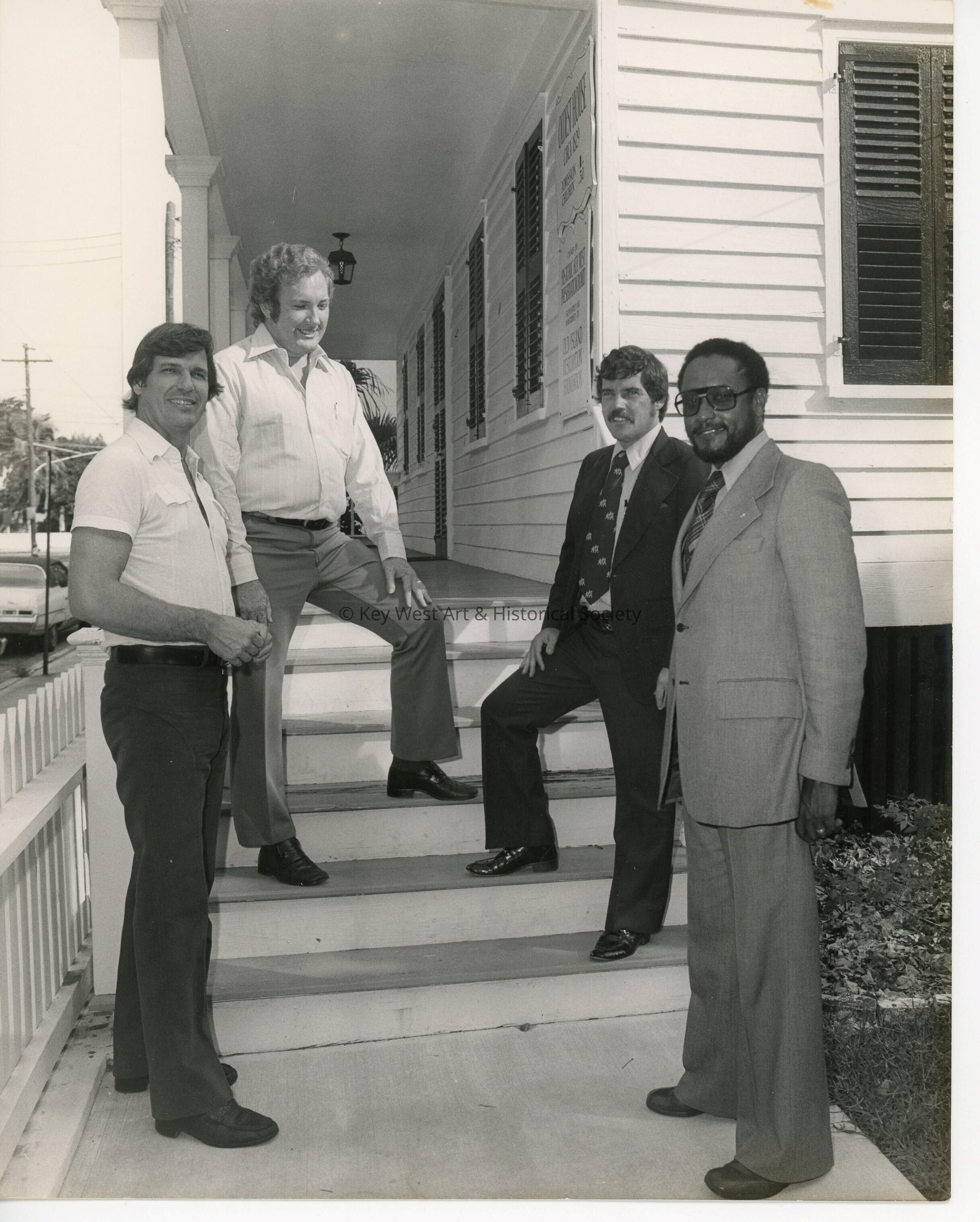 4 Unknown men standing on the stairway at a museum.Collection