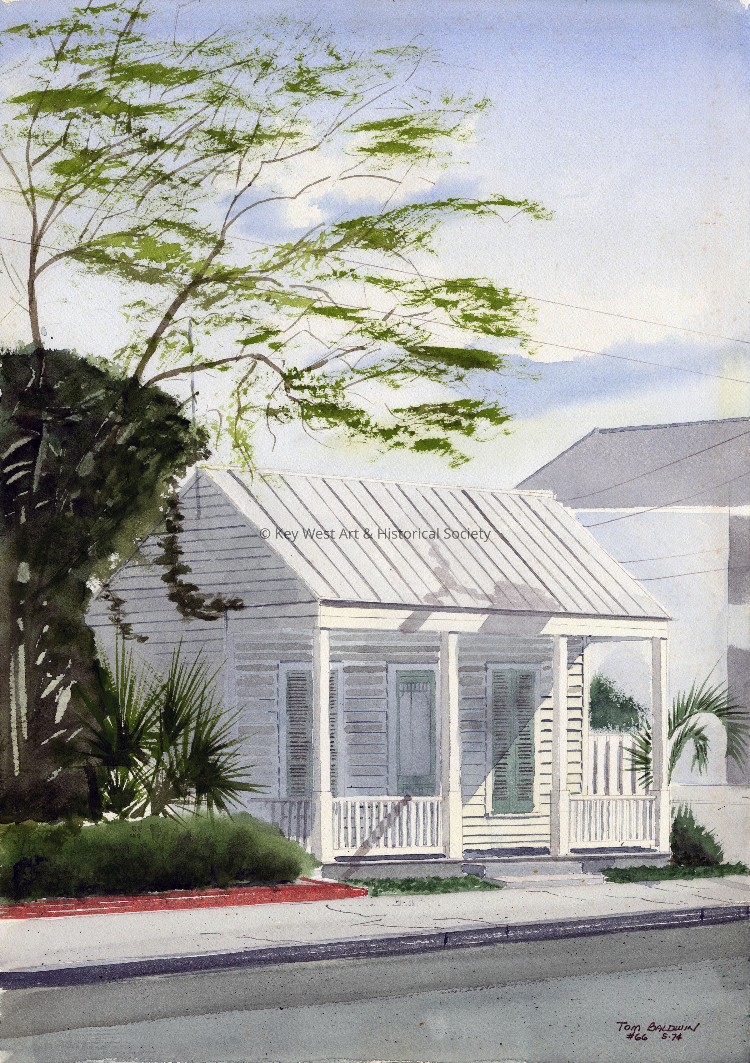 Watercolor painting by Tom Baldwin depicting a Key West conch house.Artwork Details