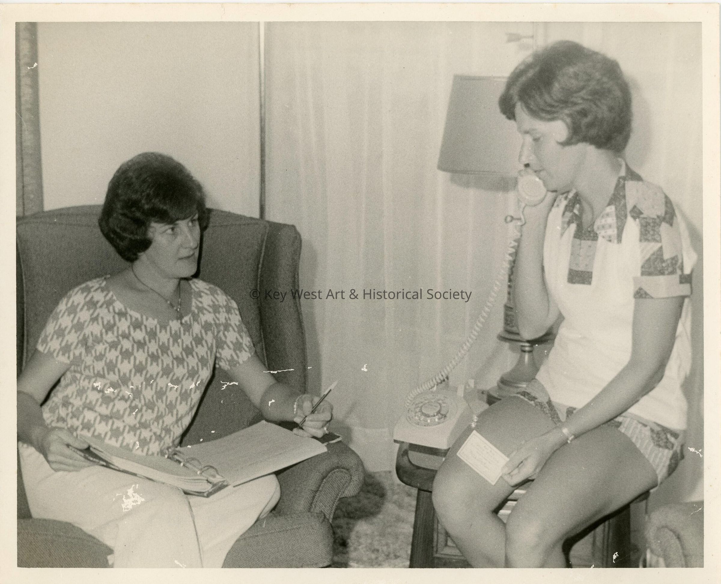 Woman in an office, one is using the phoneEntry/Object ID