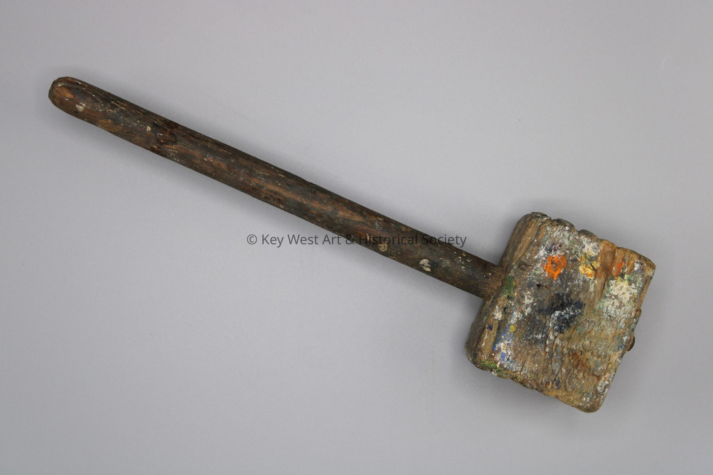 Wooden mallet with a waffle-like pattern used by the artist Mario Sanchez to create his wood carvings.Collection