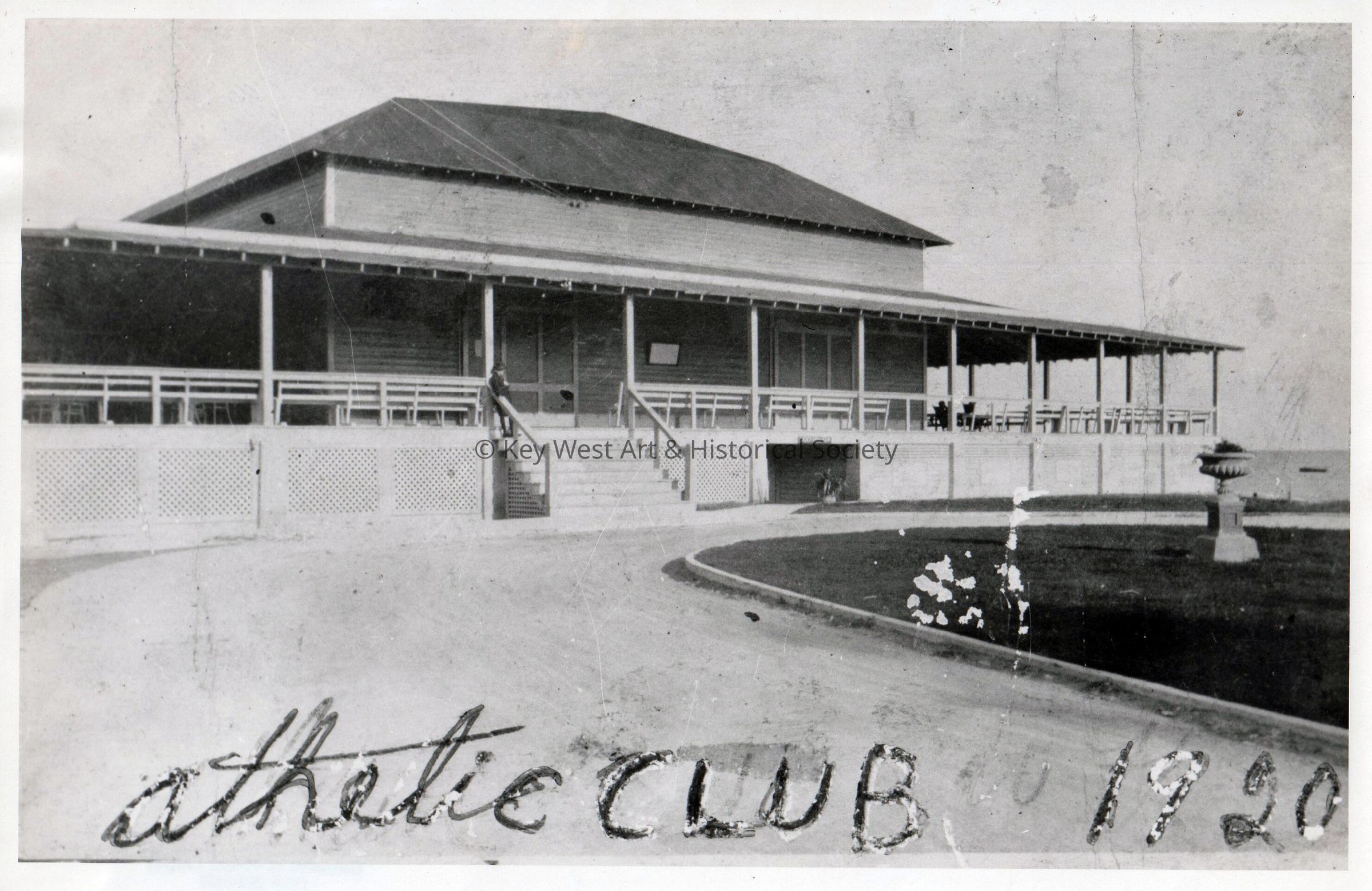 Black and white photograph of the Athletic Club at the southern end of Duval Street.