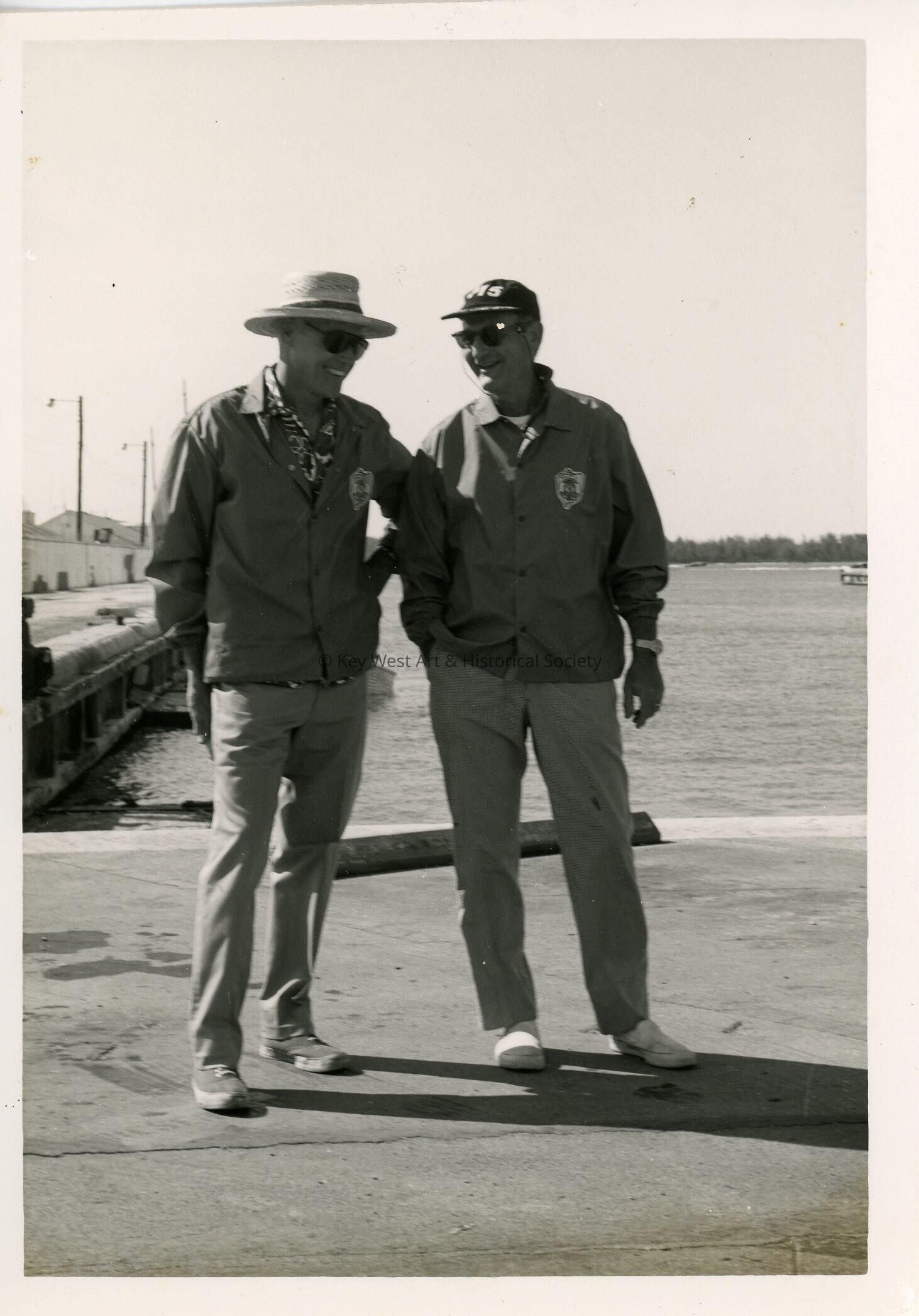 2 Unknown men standing near a pier