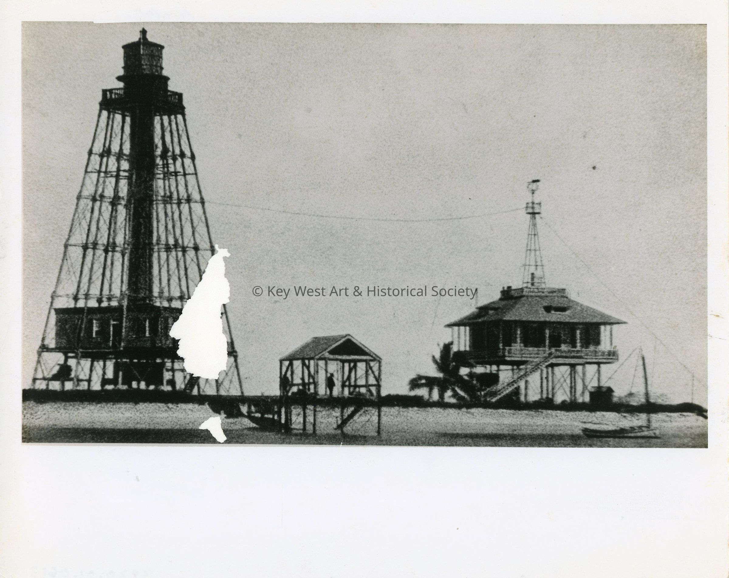 Black and white photograph of the Sand Key Lighthouse and Weather Station.