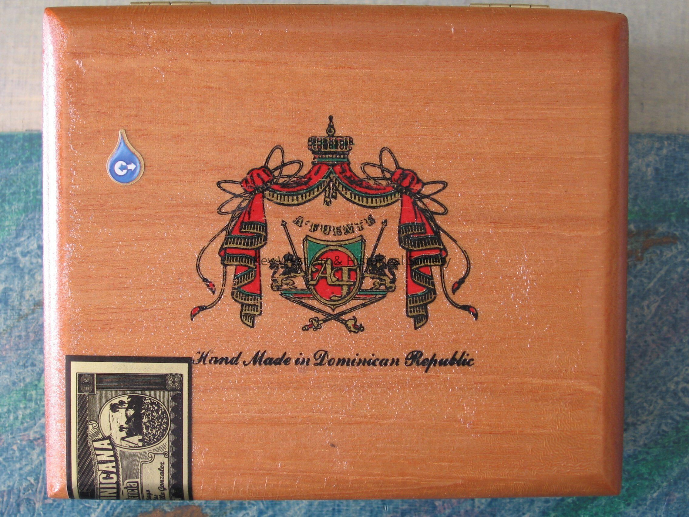 Wooden cigar box made by A. Fuente in the Dominican Republic. Box Reads "A. Fuente" "Hand Made in Dominican Republic" "Cuban Corona".