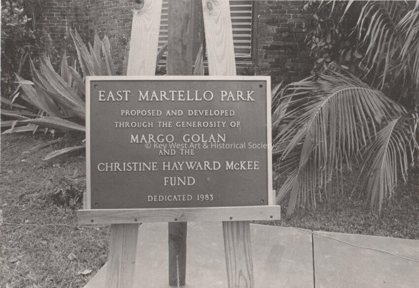 Marker for the East Martello Park proposed and developed through the generosity of Margo Golan and the Christine Hayward McKee Fund Dedicated 1983.
