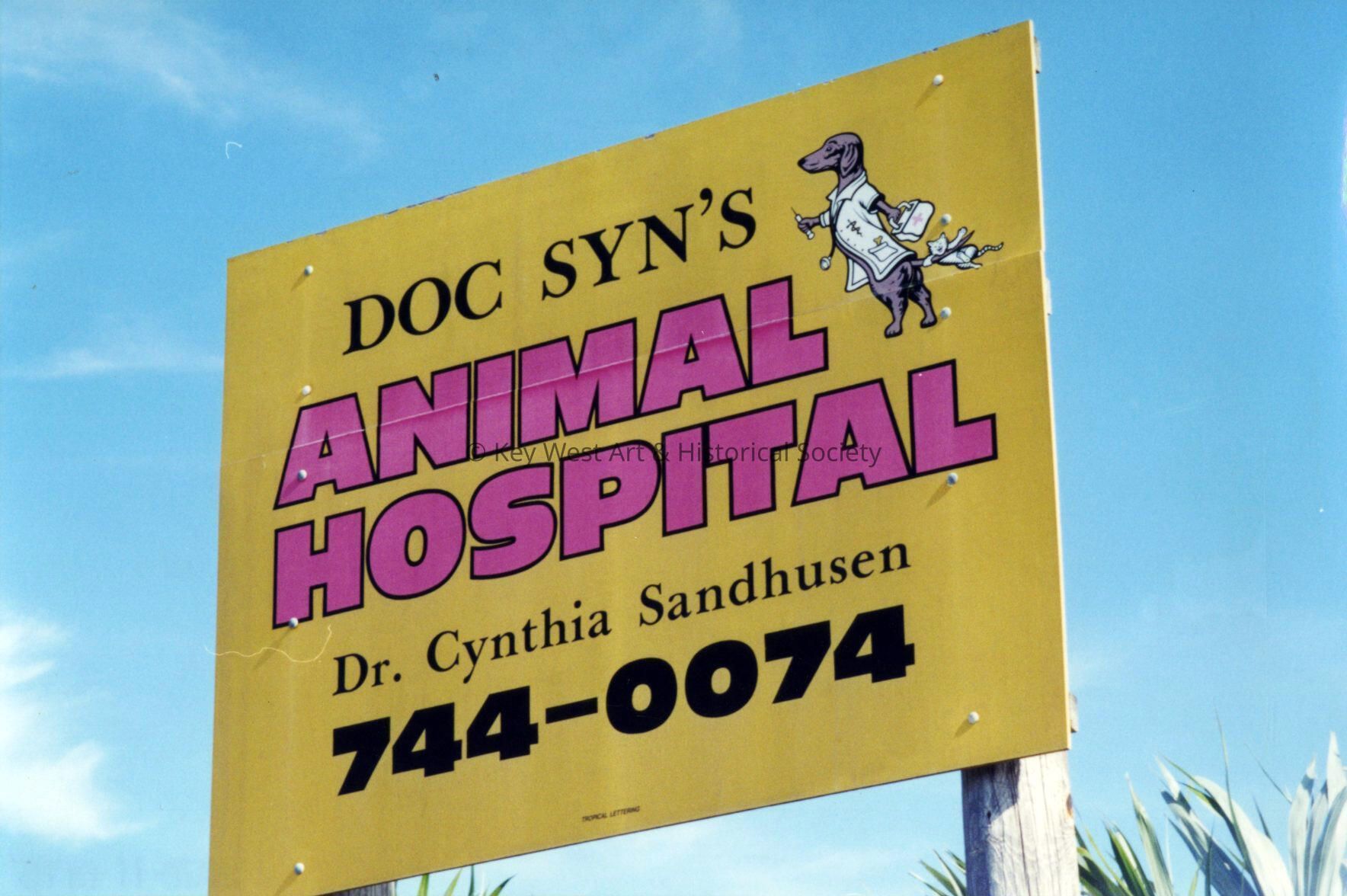Color photograph taken by historian James M. Goode of the Doc Syn's Animal Hospital sign during a trip to Key West in August 2001. Printed from Roll 17.