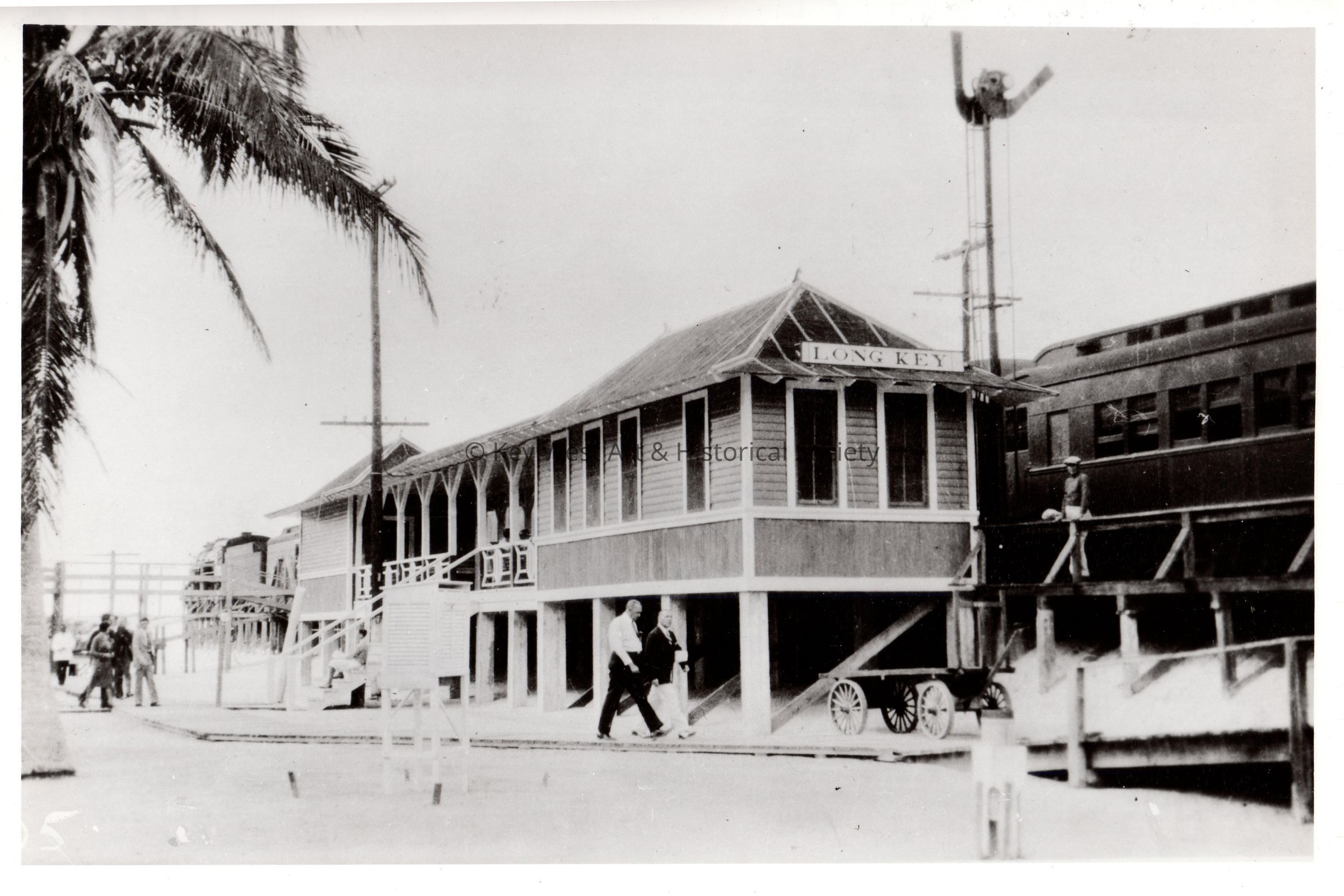 Black and white photograph of Long Key Railroad Station Depot operated by the Florida East Coast Railway.