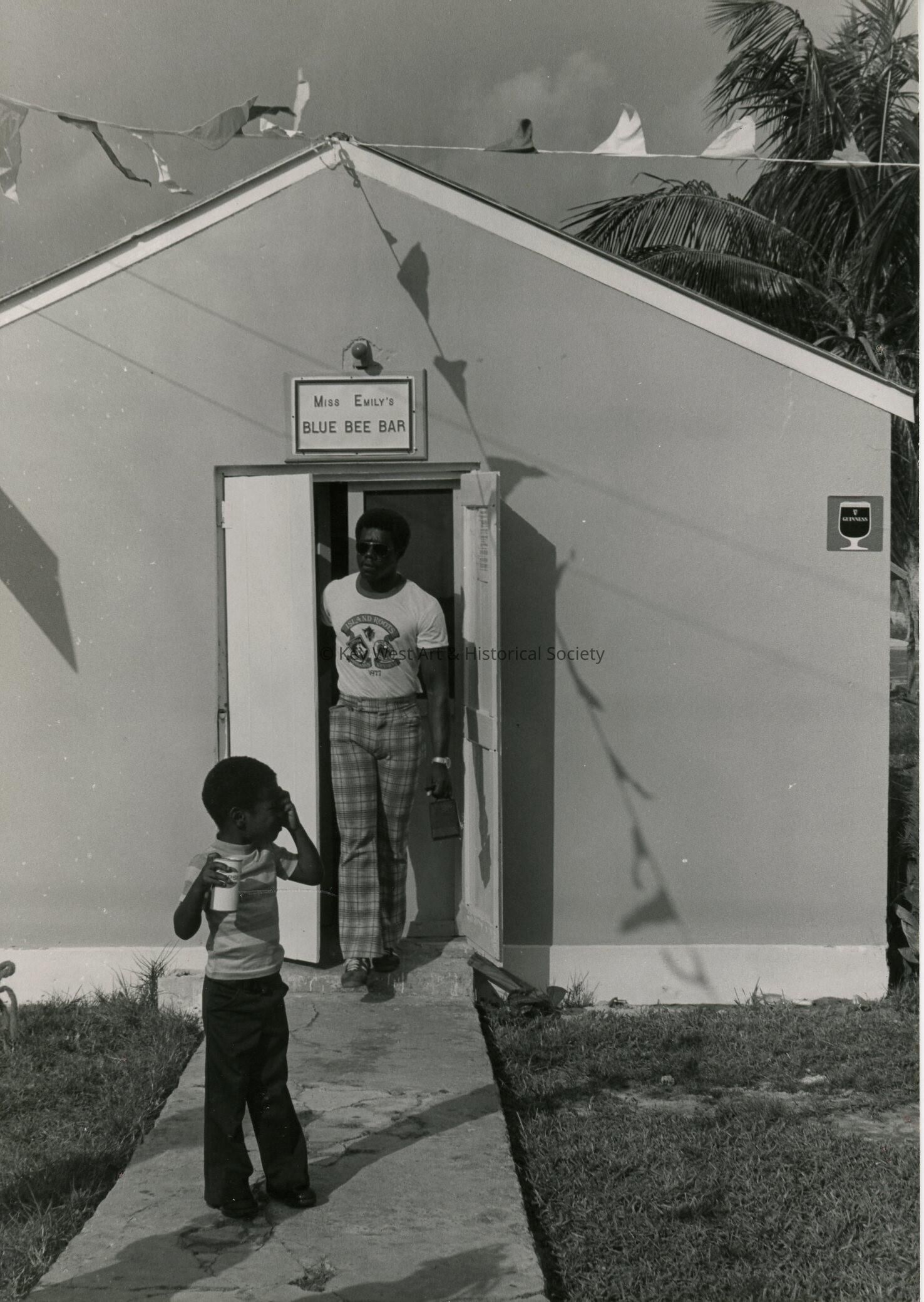A man and child walking out of the Blue Bee BarEntry/Object ID