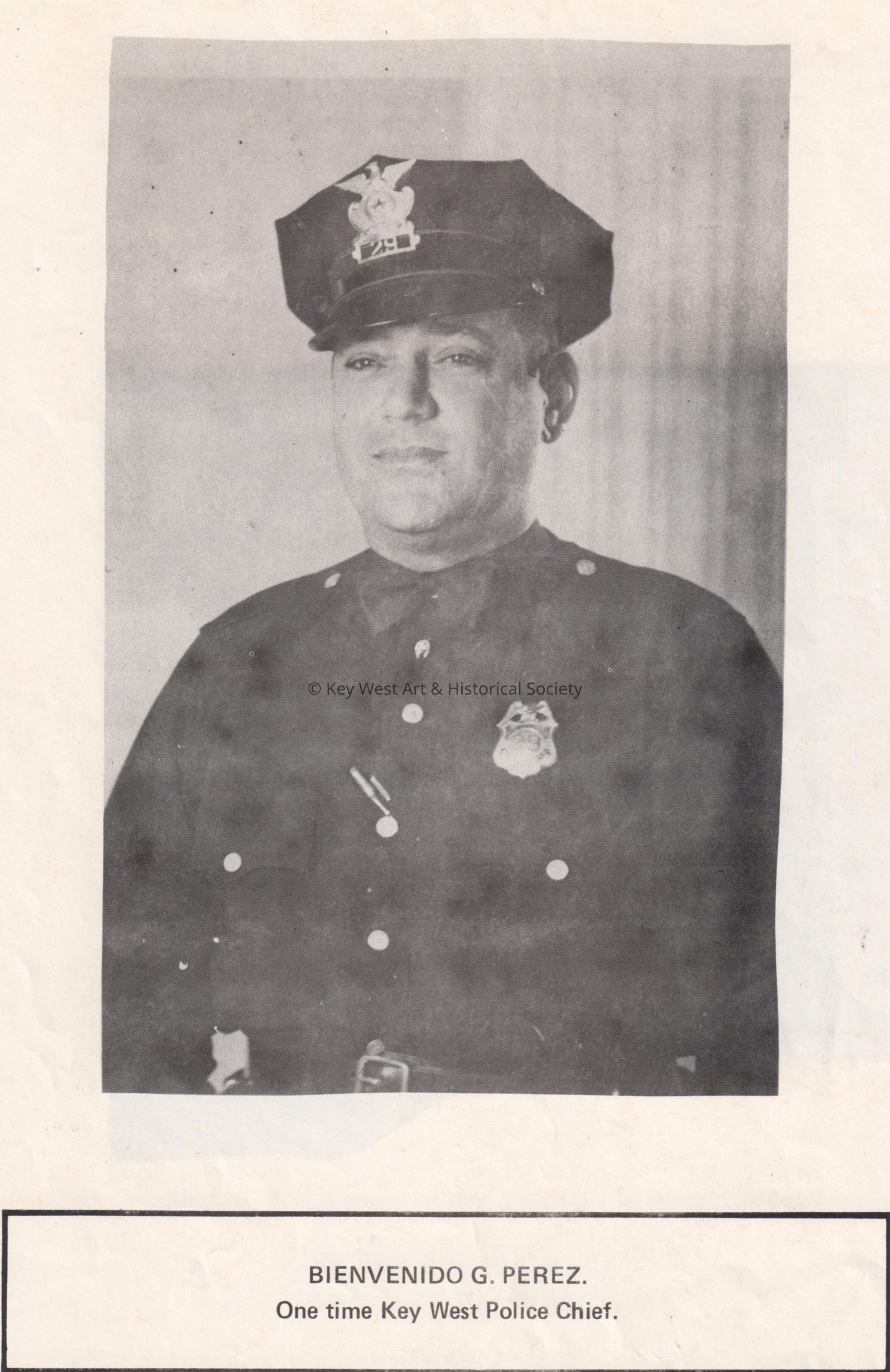 Bienvenido G. Perez, one-time Key West Police Chief. A group of policemen are on the verso.Collection