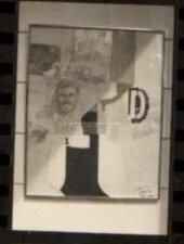 Negative showing a framed drawing of a man possibly hanging at Logan College. Accession # 2005.21.0001.Collection