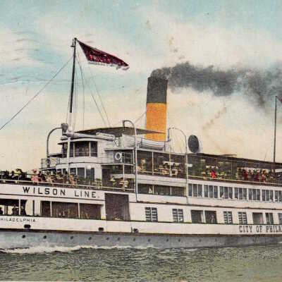 Postcard depicting a steamship underway.  The caption reads, ‘Wilson Line. City of Philadelphia’.  The message on the verso reads, ‘Hoping that this finds you feeling well, and wishing you a pleasant naval day.  Captain Chas. Moncrief’.  Note on the verso reads, ‘Received and answered September 13, 1913.’  The card is addressed to Captain J. R. Hattrick, Room 332, Sailors Snug Harbor, New York, and is postmarked Philadelphia, September 11, 1913.Collection