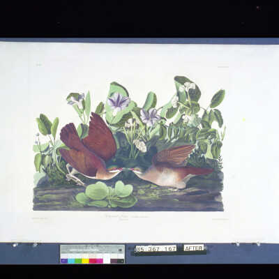 Color negative of John James Audubon's 'Key-west Dove', plate 167, in 'Birds of America'. He encountered the Key-west Dove during a visit to the Florida Keys and Cuba in 1832.