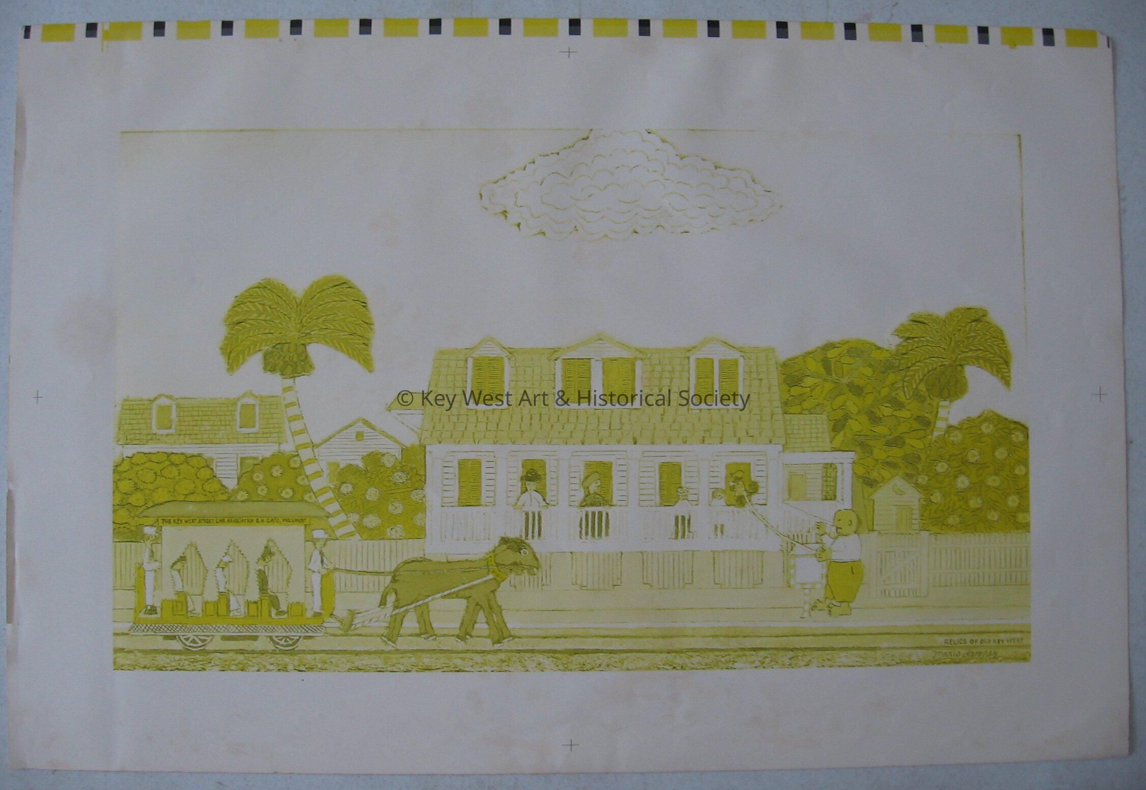 Printer's proof set of "Relics of Old Key West" color separated. Print is in yellow and black/