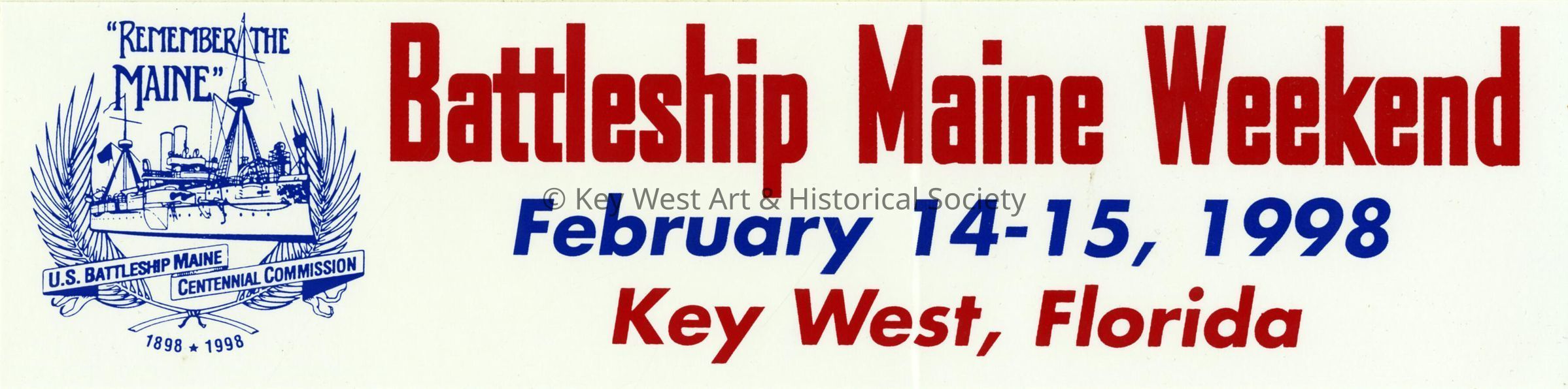 A Battleship MAINE Weekend bumper sticker honoring the centennial of the sinking of the U.S.S. MAINE.