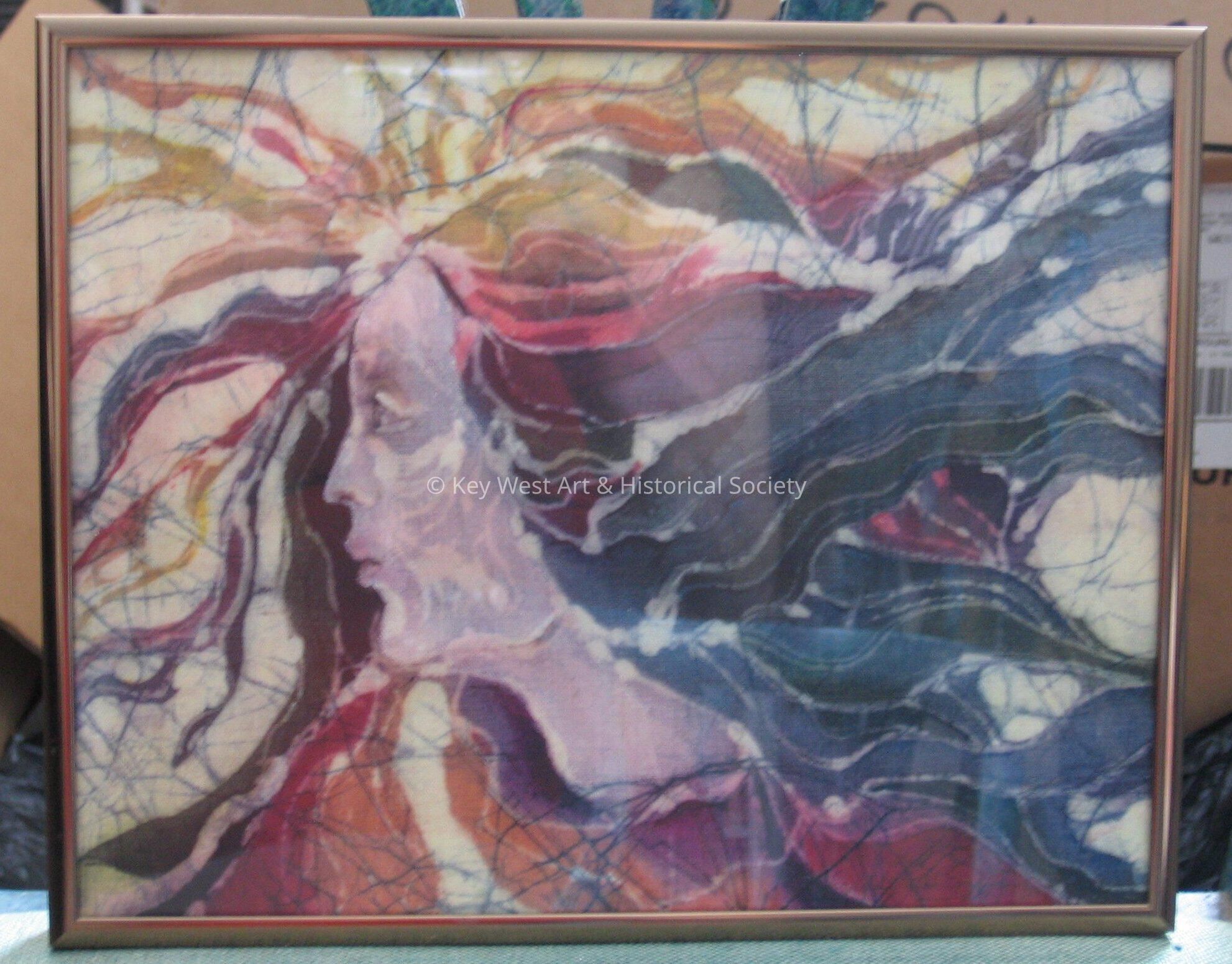Batik on fabric.  Image of a woman profile facing left.Collection