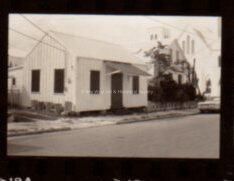 Negative showing a wooden house located on William St. The house is unattached but belongs to the house next door at 720 Fleming (house is on the corner of William and Fleming). The Southern Most Prayer and Faith Center Church can be seen in the background; church was formerly a First United Methodist Church. Accession # 2005.21.0001.Collection