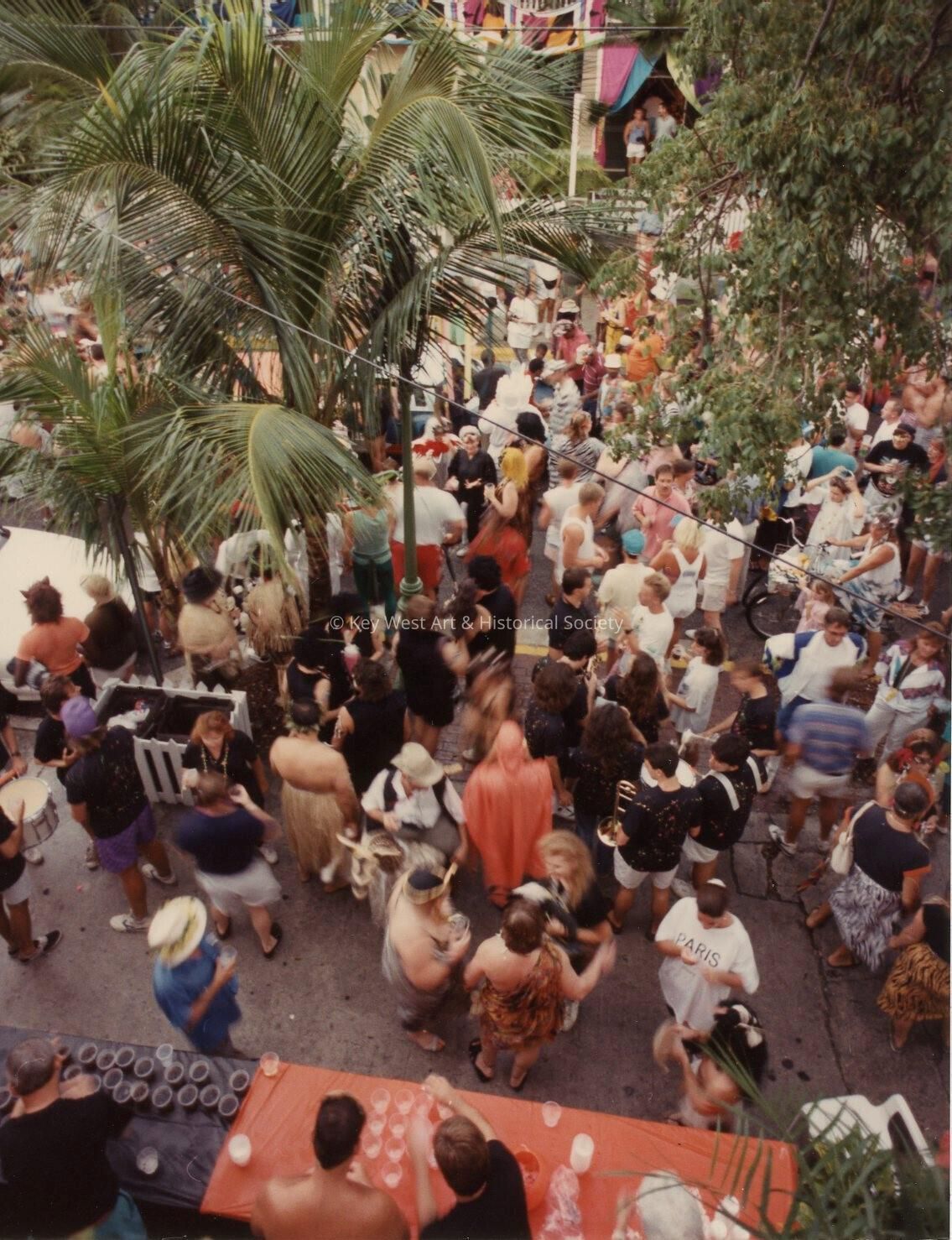 An Unknown group of people standing outside, some are dressed up in front of the Tropical Inn at 812 Duval Street.Collection