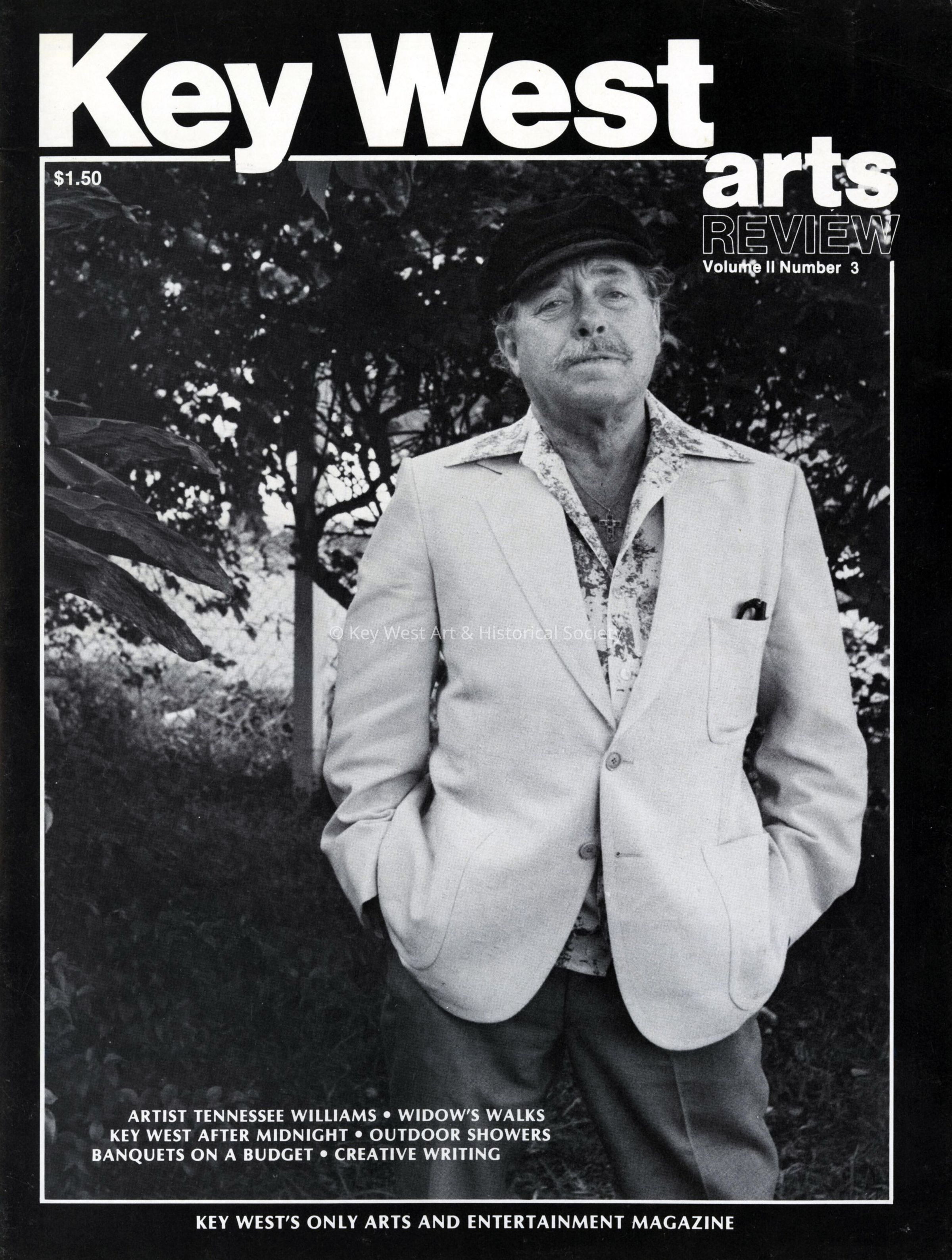 Key West Arts Review magazine with the cover featuring Tennessee Williams. Inside are stories about Tennessee Williams' paintings, widow walks and creative writing.