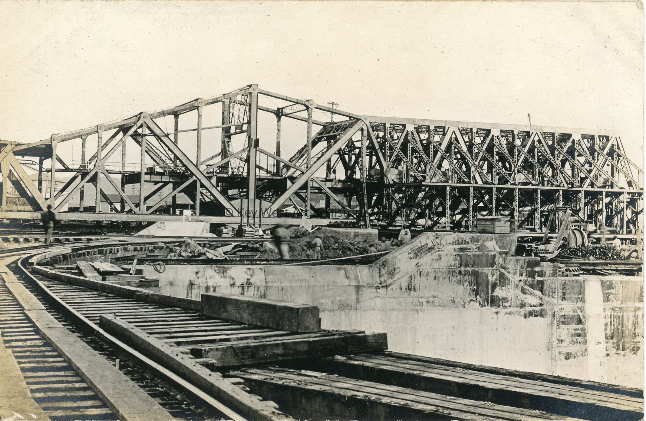 Emergency Dam, this is a bridge that can be swung across the locks and is equipped with guides and gates that are lowered in the lock to stop the water in case anything injures the gates so they can't controll [sic] the water.Language