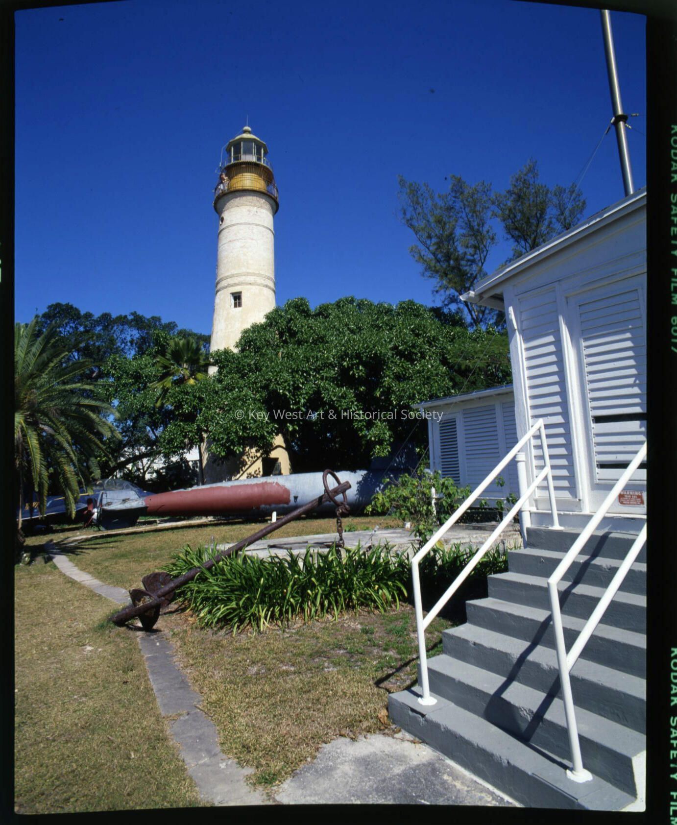 Color negative of the grounds at the Key West Lighthouse and Keeper's Quarters when it served as a military museum.