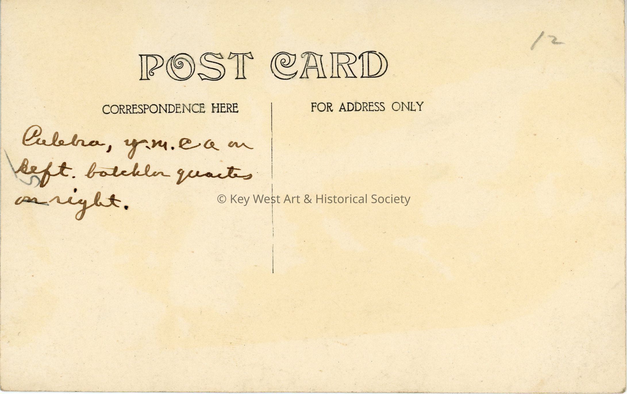 Culebra, Y.M.CA on left. batchlor [sic] quarters on right.Language